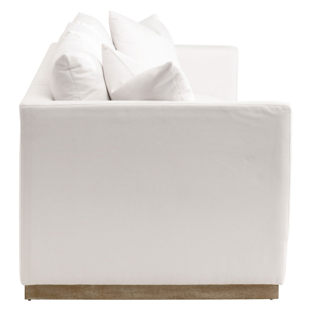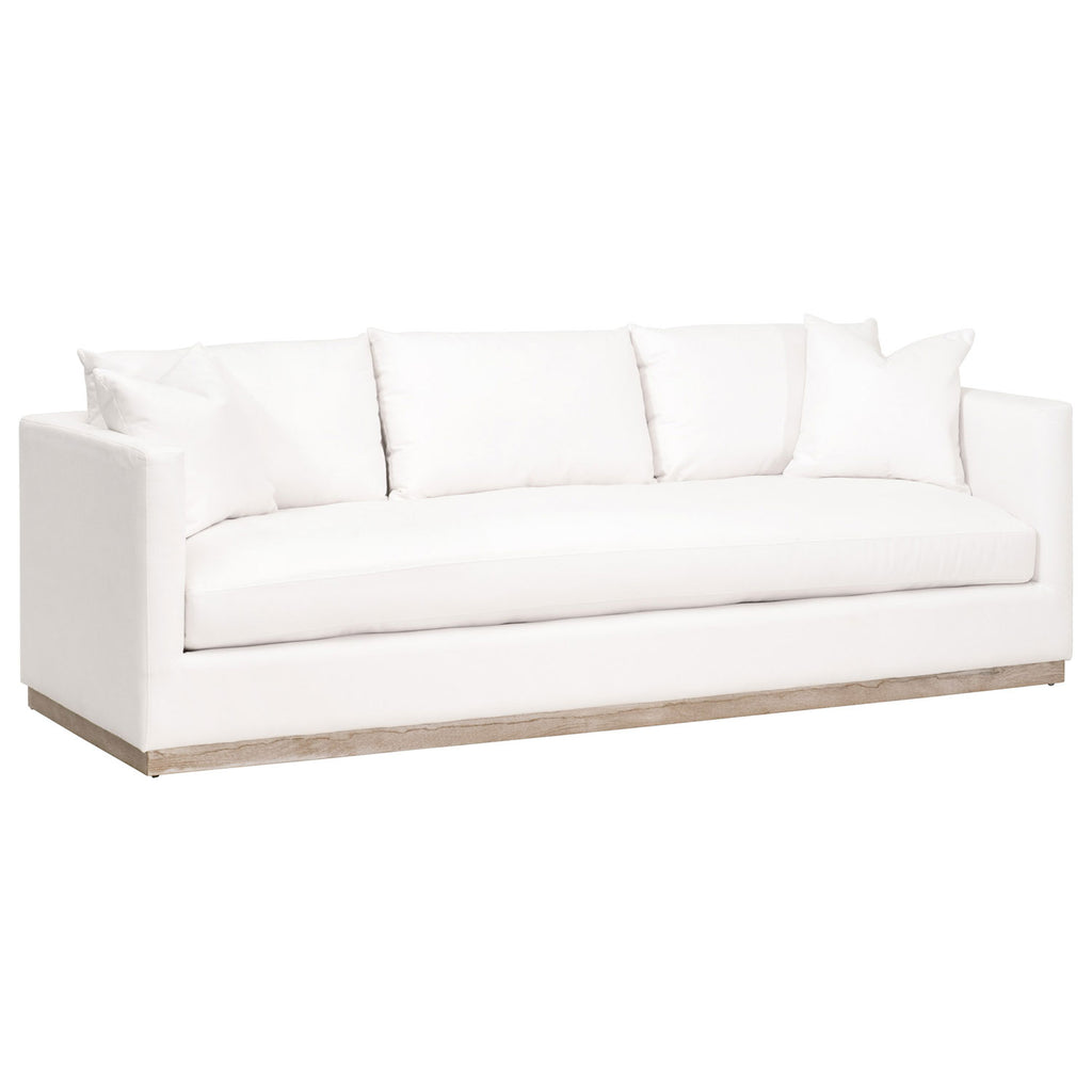 The Essentials for Living Siena sofa is not only appealing to the eye, but also an ideal place to sit down and unwind. The soft ivory upholstery is made of a high-quality performance fabric that is easy to clean and care for. The cushions are strategically filled with a down/polyester blend that balances the perfect amount of support and comfort. The modern design with sleek lines and exposed wood base pair nicely with the neutral color palette, making this sofa a great addition to a transitional style living space.