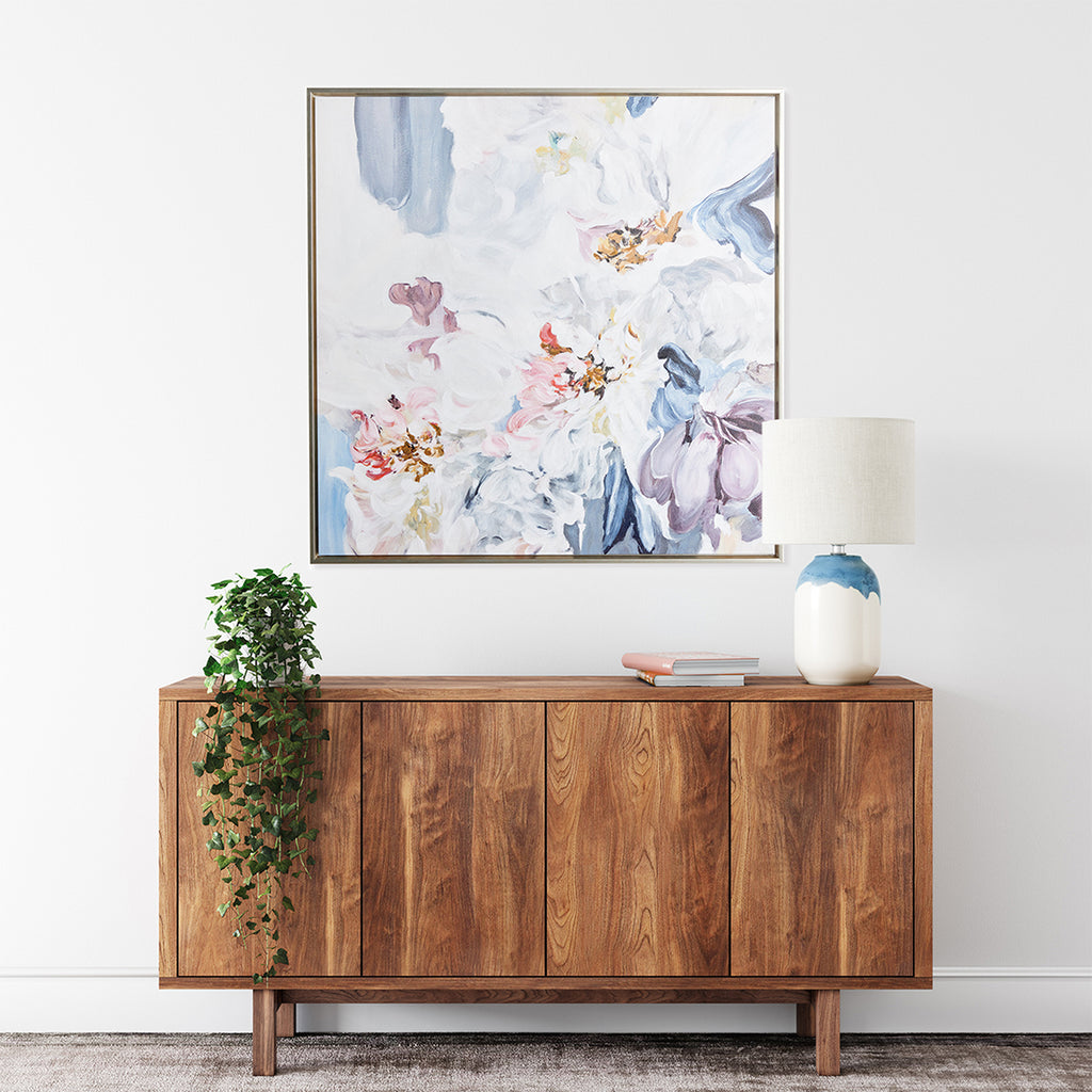 The Ethereal is a decorative home accent designed to elevate your space. Crafted from canvas/wood/polystyrene, finished in blue, it brings texture, warmth, and timeless style to any room. This modern interpretation of a close-up study of a lush and full floral arrangement makes for a striking accent for the wall. Highlights are hand-embellished with touches of paint creating a rich texture and depth. The canvas is finished off beautifully with a sleek silver frame.
