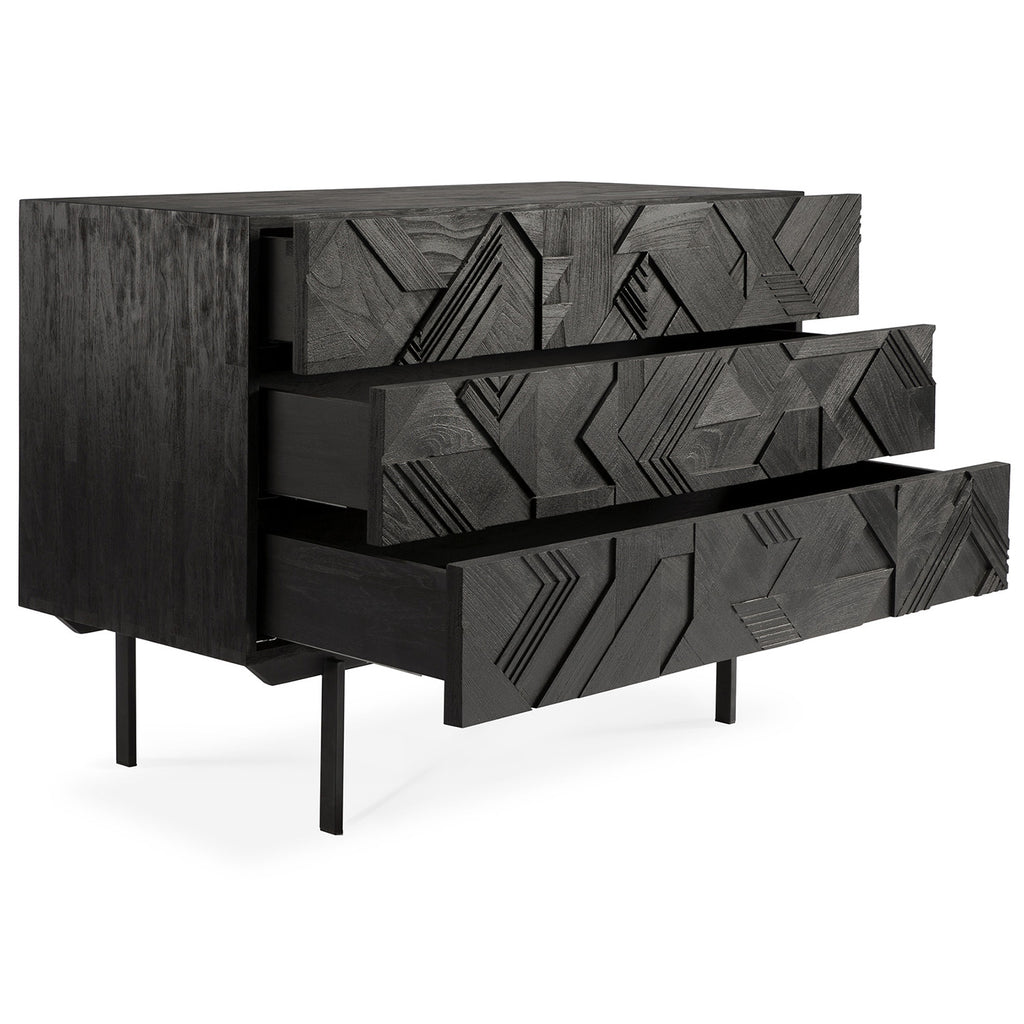 In his quest to add movement to the surface, designer Alain van Havre started layering and combining triangular shapes. Before he knew it he had created a visually enticing composition out of teak and the Ethnicraft Graphic design was born. By using multiple layers, a sense of depth and dynamism is created in the intricate arrangement. Motion and warmth are added by further perfecting the natural attributes of wood.