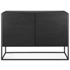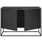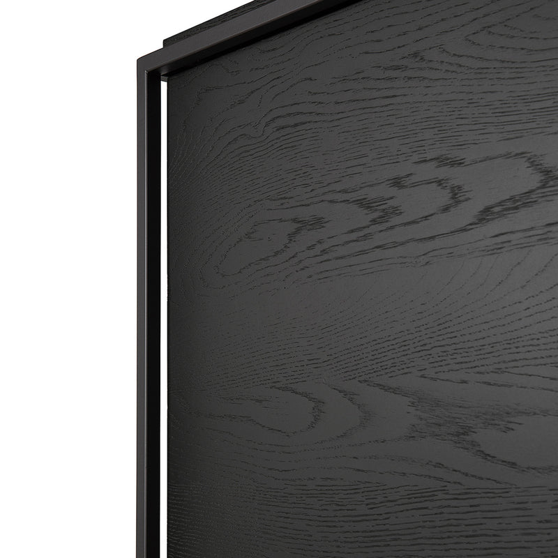 Practicality without sacrificing style. The contrasting characteristics of wood and the rectangular metal frame of the Ethnicraft Monolit sideboard create a unique backdrop for all modern media equipment.