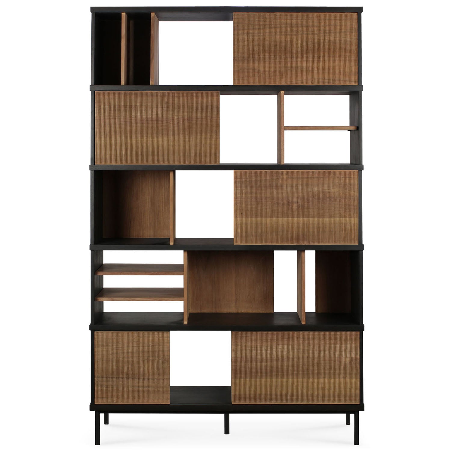The Ethnicraft Oscar rack, designed by Alain van Havre, immediately attracts attention with its atypical compartment division. Notice the exceptional grooves in the doors: each narrow groove was carefully hand carved, making every Oscar piece unique.