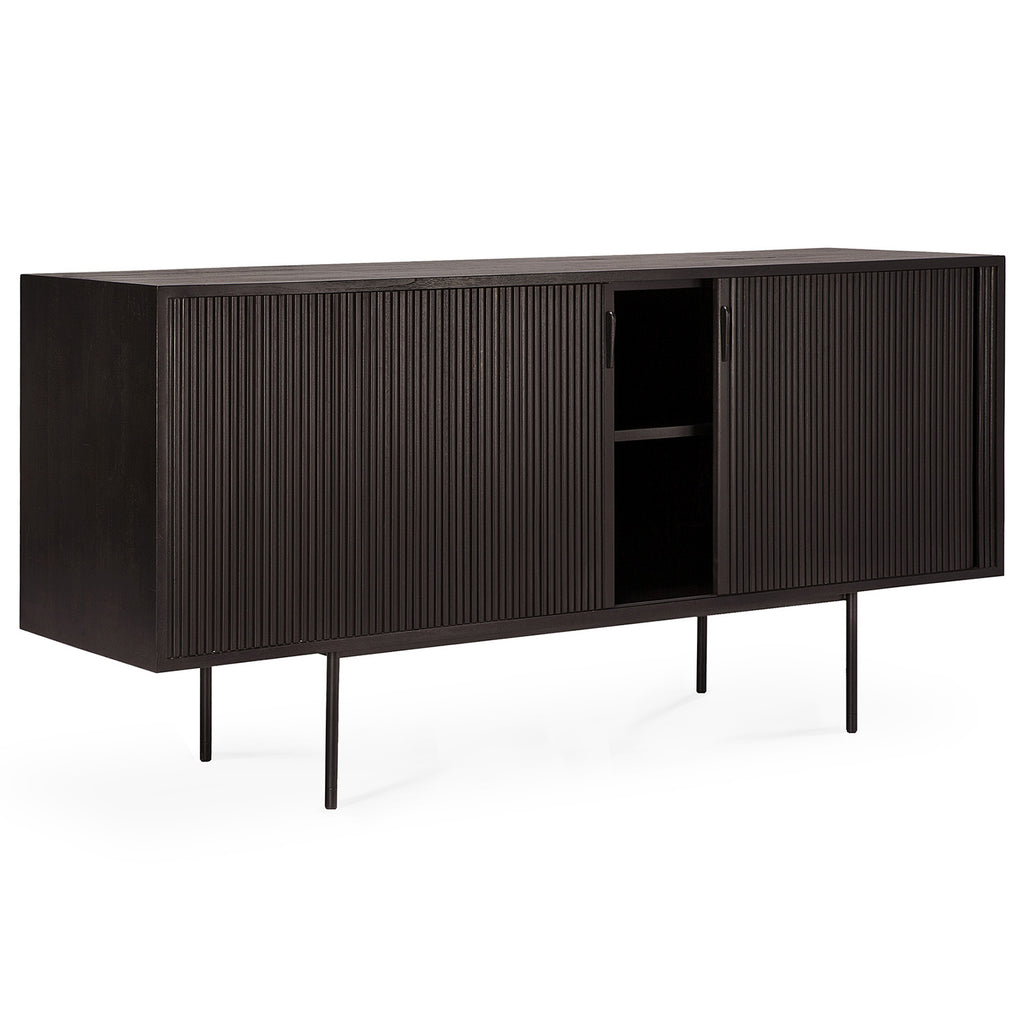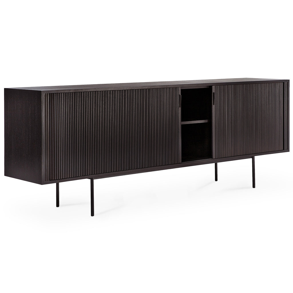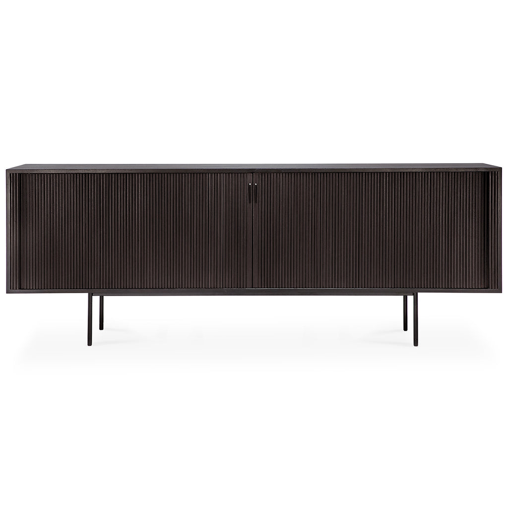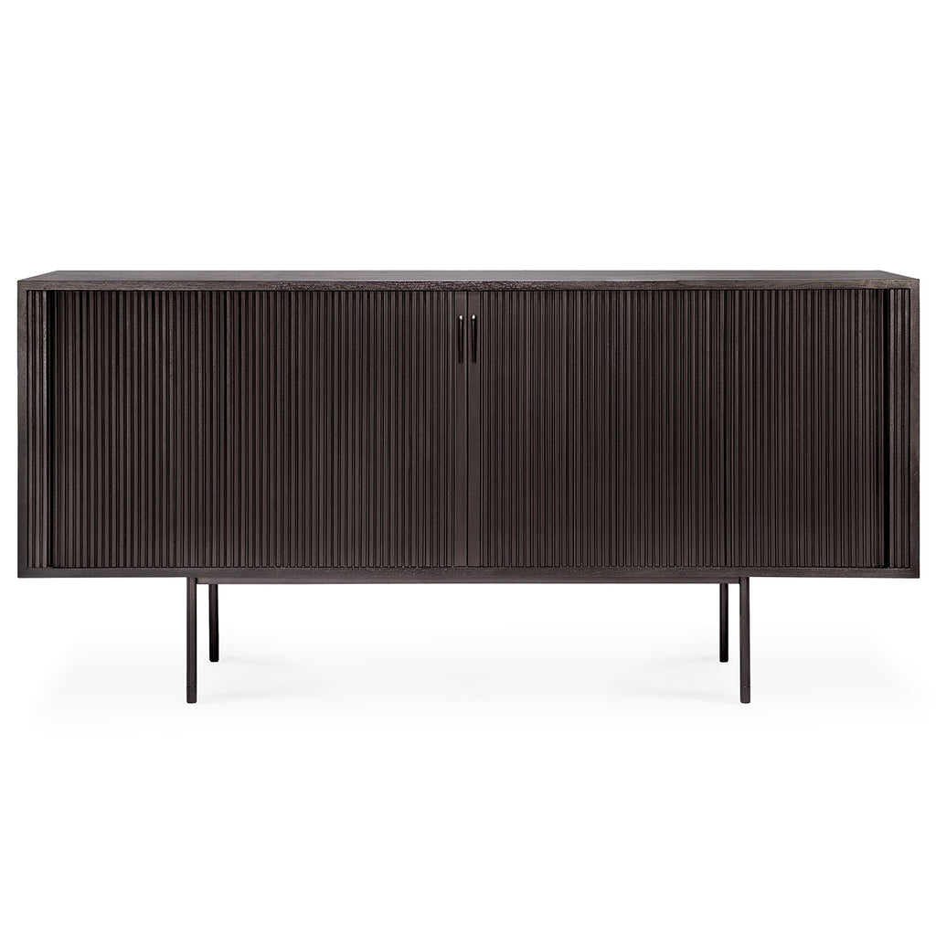 The Ethnicraft Roller Max sideboard offers functional storage in an eye-catching design. Featuring sliding doors, adjustable shelving and seamlessly integrated handles, this piece beautifully showcases the collection's stacked wood-stick design. The result is an elegant and sophisticated item for both residential and commercial spaces. Designed by Alain van Havre.
