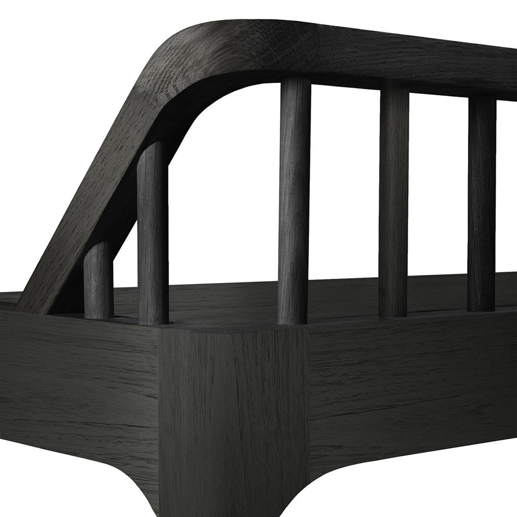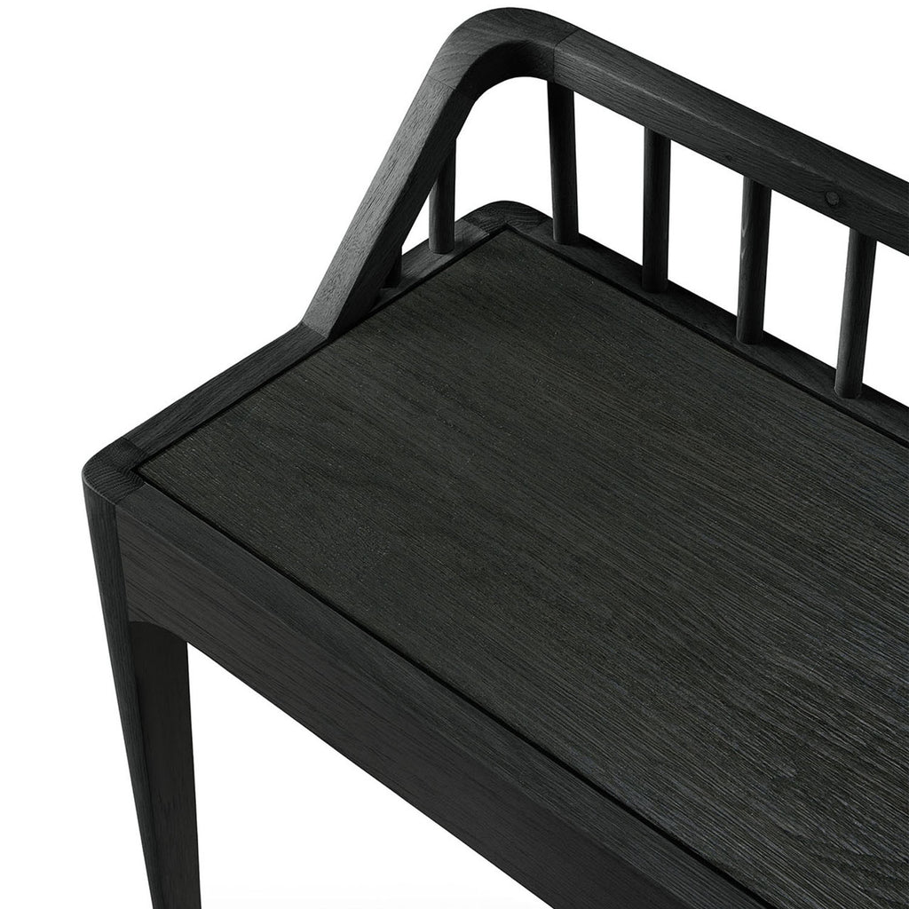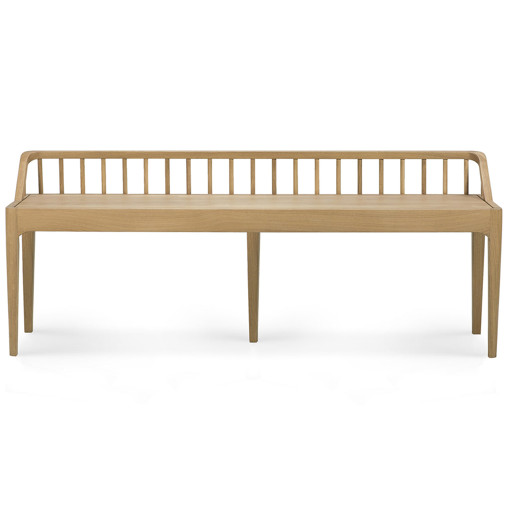 The Ethnicraft Spindle collection found its inspiration in the traditional spinning wheel and incorporates perfectly aligned spokes into the backseat. Wherever you choose to place it, the Spindle bench in solid oak is a striking piece.