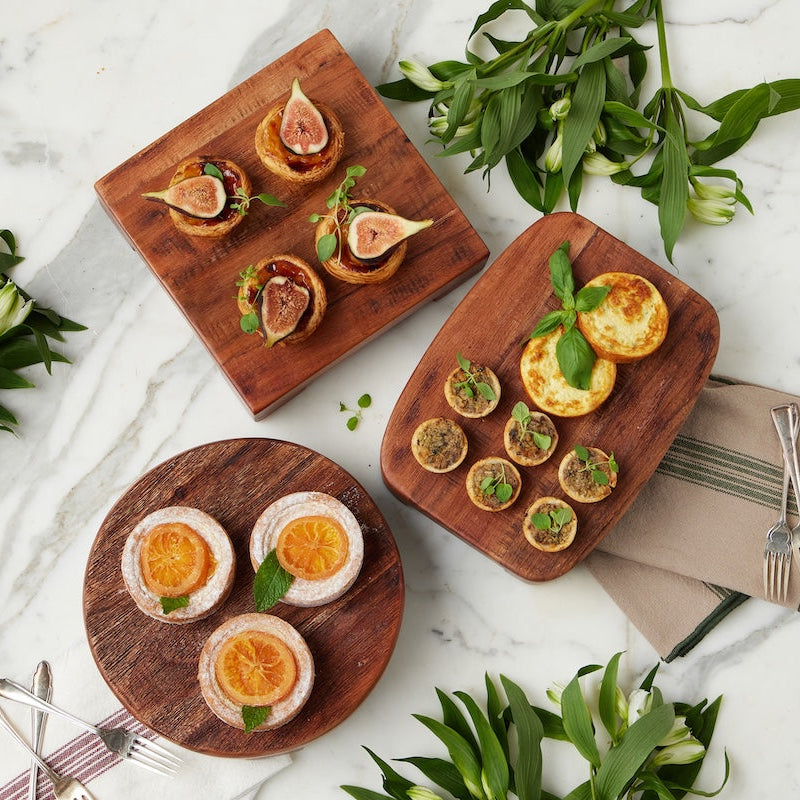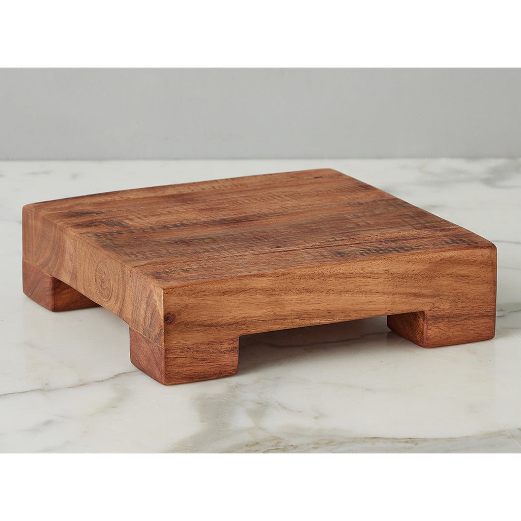 The Classic Square Trivet Riser is a versatile kitchen and serving essential that brings warmth and dimension to any surface. Handcrafted from reclaimed acacia wood, its elevated design allows for both practical use and beautiful presentation—whether you're serving hot dishes, styling centerpieces, or adding layered interest to your countertop. With its natural finish and timeless shape, this riser effortlessly blends into a variety of interiors, from rustic to refined. Due to the reclaimed wood’s natural characteristics and artisanal craftsmanship, each piece may vary in shape, color, and size from those pictured—making every riser truly one-of-a-kind.