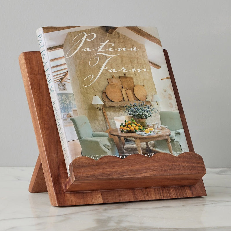 A supreme example of beauty meets function, our chic and practical Scalloped Cookbook Holder is a countertop staple. Crafted from richly grained acacia wood, each stand features unique wood patterns, showcasing the beauty of sustainable materials and artisanal craftsmanship. The ledge features a timeless scalloped edge, adding visual interest and charm to your counter. Perfect for showcasing your favorite recipes in the kitchen, organizing important paperwork at your desk, or keeping a beloved storybook on display in a playroom.
