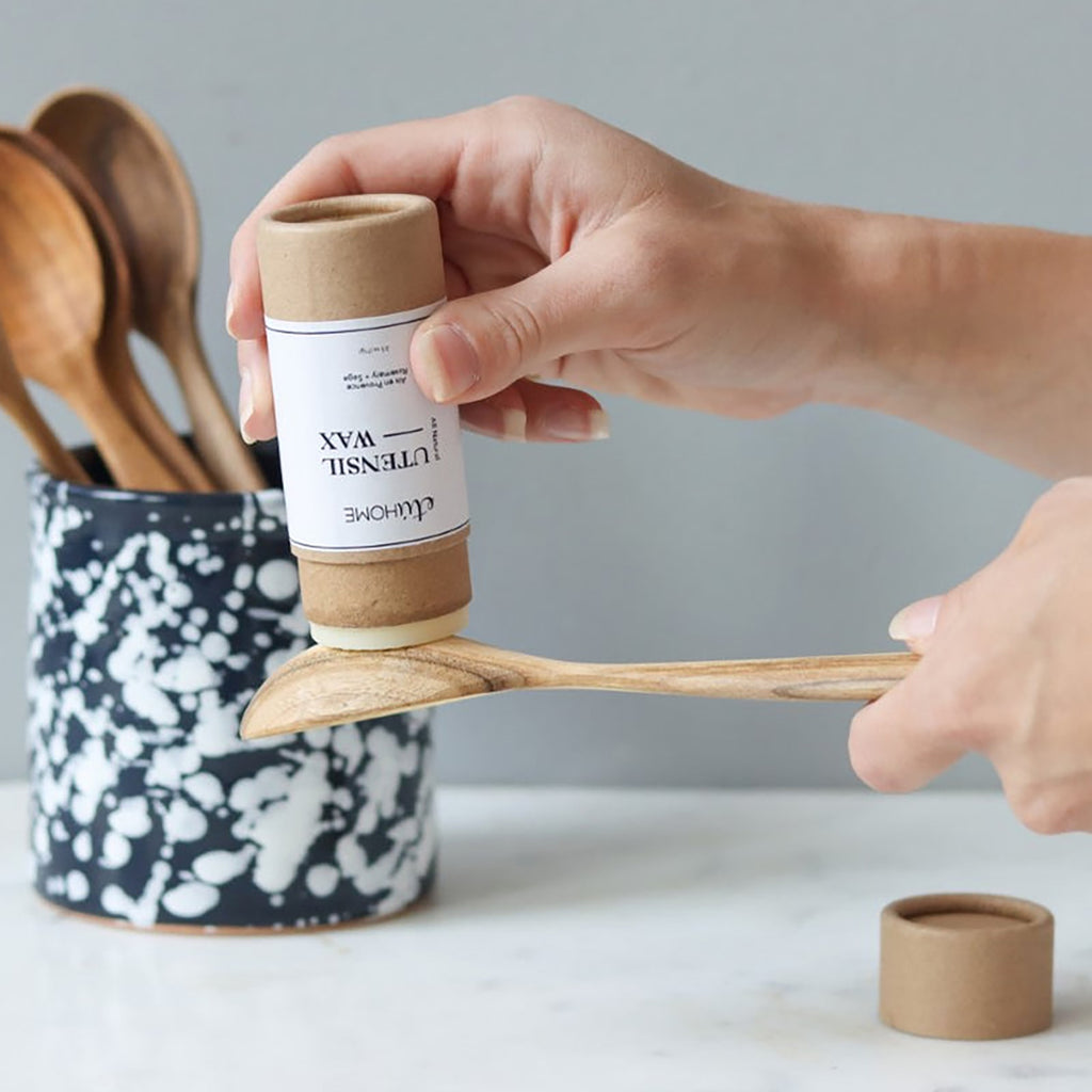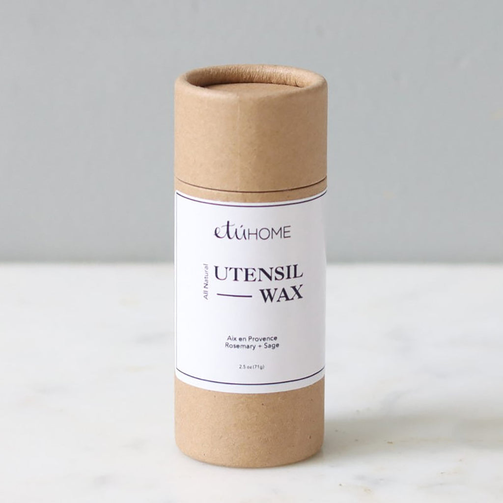 Protect your wood utensils with etúHOME's All-Natural Utensil Wax. Wood spatulas, spoons and ladles often pick up odors and staining, so this food-safe blend of beeswax and coconut oil helps to eliminate these problems while hydrating your cookware to last longer. Gently push on the bottom of the tube until the wax is exposed and rub directly on the utensil.