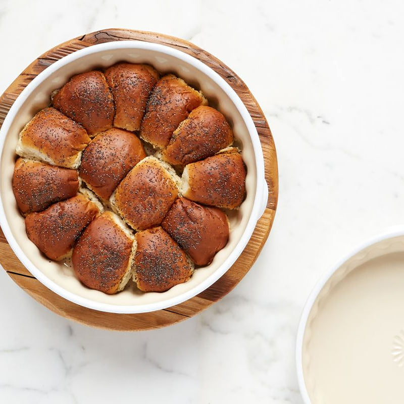 Handcrafted from white European clay, our Bakeware Collection is created by European artisans. Our pieces are inspired from antique molds collected from classic 19th century European kitchens.The raw clay is left untouched on the bottom, while the top portion is dipped twice: the interior features a warm, cream glaze on the inside and a bright, white glaze on the outside for the perfect mix of traditional design and contemporary style. The baking dish heats evenly throughout, ensuring a perfectly cooked recipe every time. These durable pieces easily handle all your one-dish baking, roasting and broiling needs and is meant for everyday use as these pieces are easy to clean and resist chips.These stoneware bakers have endless possibilities and can also be used for serving as it moves from the oven to the table seamlessly without the need to transfer your meal to another dish. Skip the oven altogether, and this casserole dish can be used as a statement serving tray. From beginning to end, each piece requires approximately 35 hours of work. During the process, our bakeware pieces are fired twice in a precision-controlled electric kiln. Crazing will typically occur during the first fire. This is a desired effect to enhance the individuality of each piece. Crazing does not affect the quality or durability of the item.