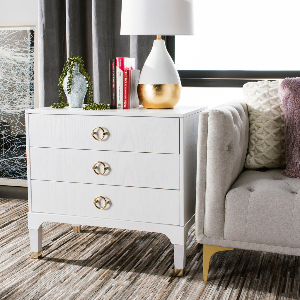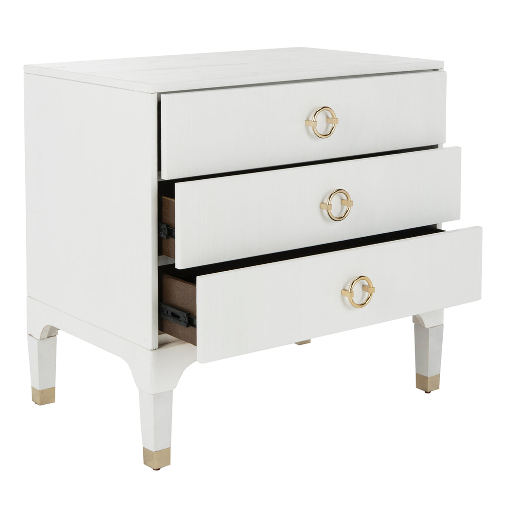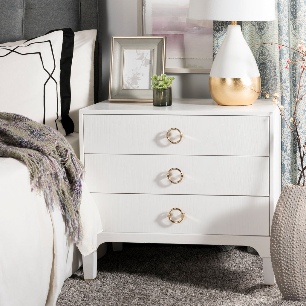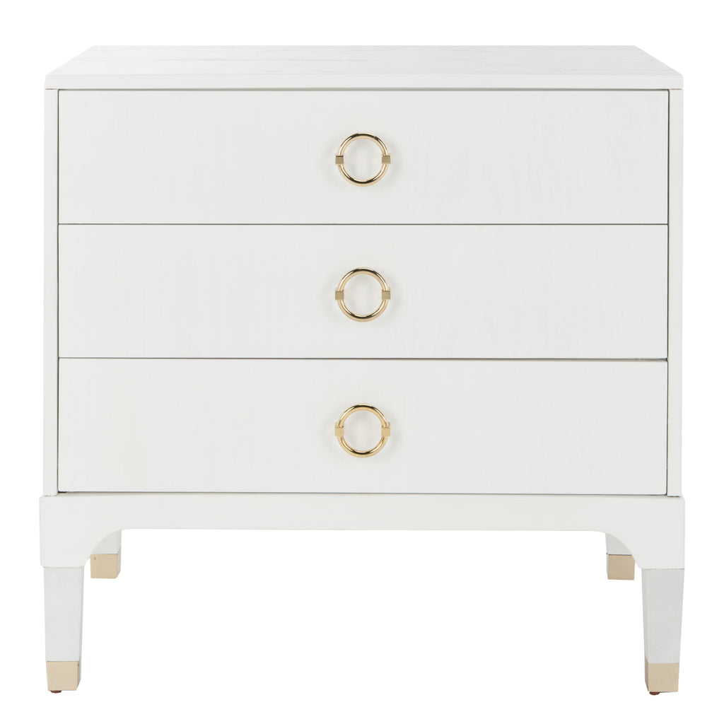 Elegant and refined, this contemporary Fairfax nightstand brings style and substance to any interior. Designed with a blend of clean lines, chic hardware and a timeless white finish, its ample three drawers add storage to any chic bedroom.