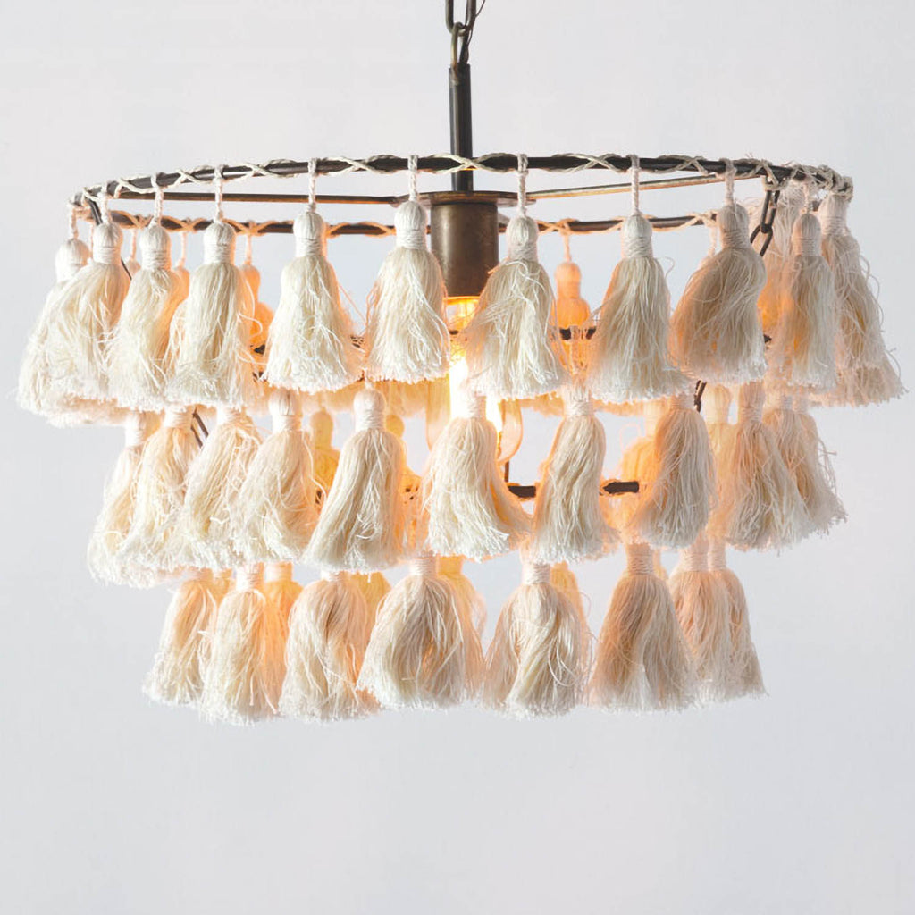 Use the Farrah Tassel Pendant as accent lighting in any room or in your shop. Includes 42in of chain and a canopy. This pendant lamp is designed to be hardwired: no plug is included.
