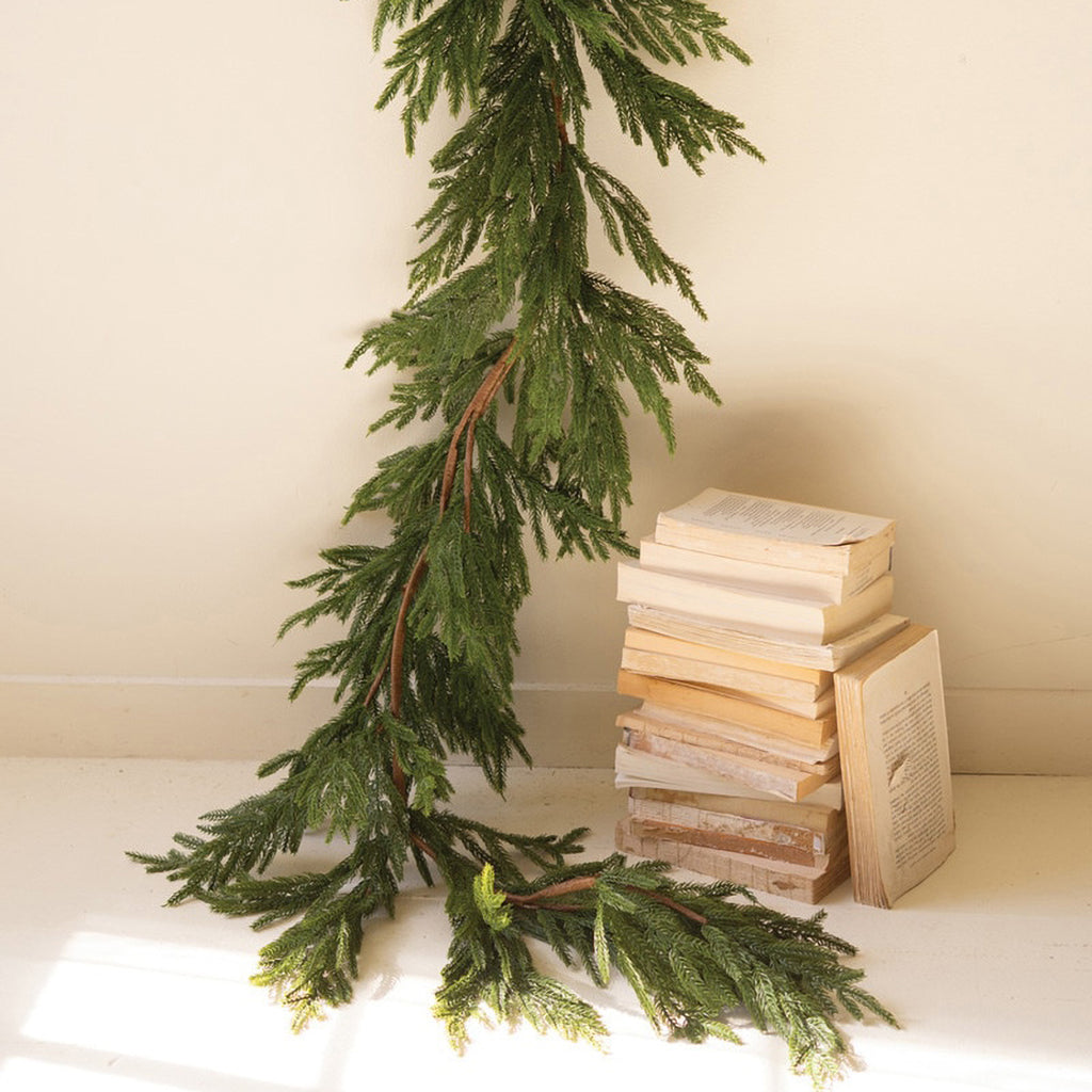 Wrap your mantel in this faux cedar garland. Staircases, banisters, and high shelves need this touch of greenery. Add some to your space this holiday.