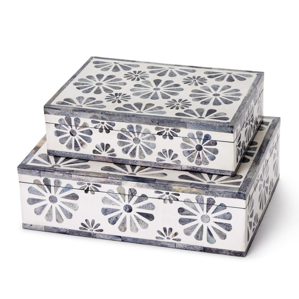 Handcrafted in a classic floral blossom, these mosaic pieces of natural bone and resin lend an artisanal touch to your tabletop and home. Our workshop is a specialist on the craft of mosaics, an art and skill passed down from generation to generation. Perfect as a distinctive accent in your home or to stow small treasures.
