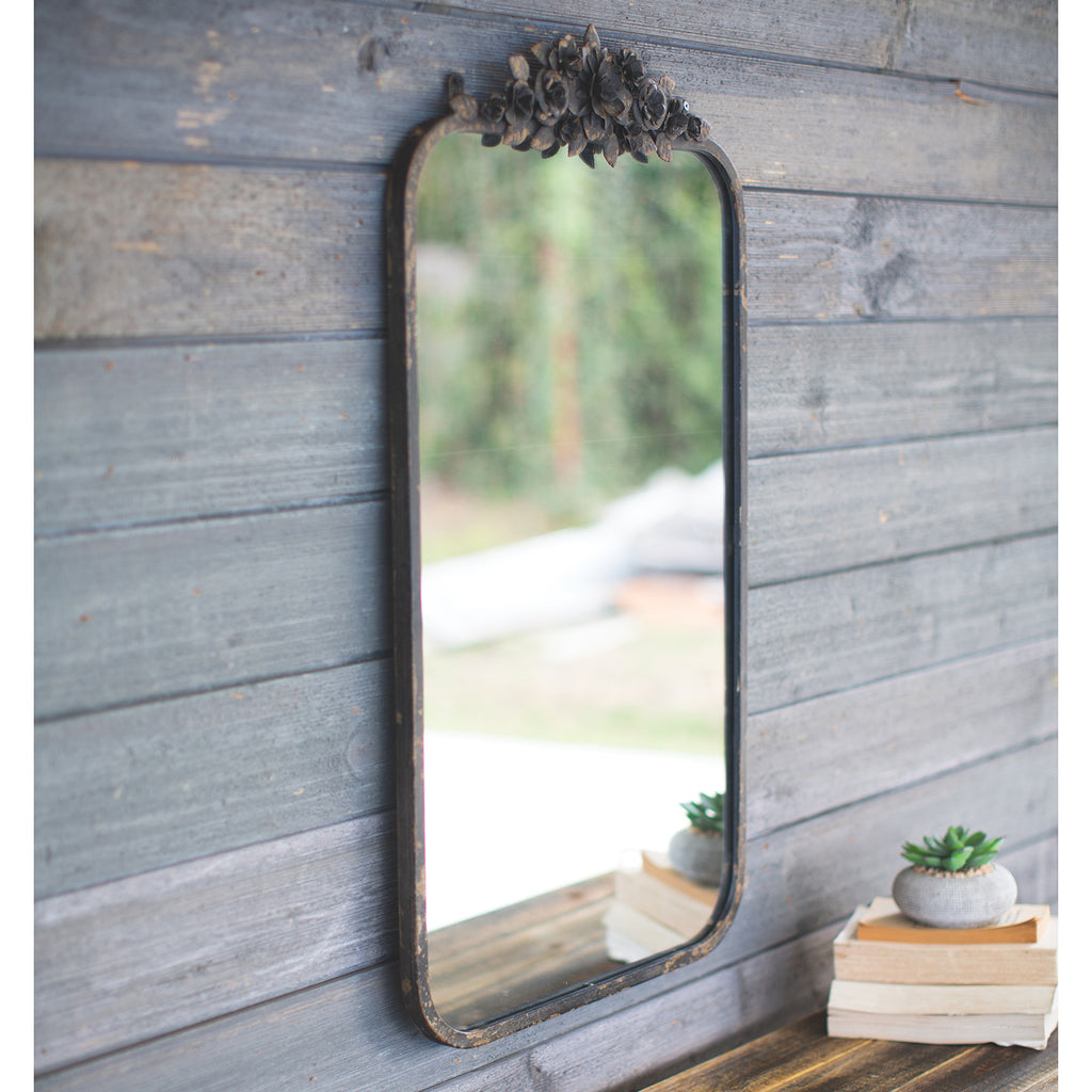 Sporting a gorgeous metal frame with a virtual metal bouquet at its crest, this rugged yet feminine mirror reflects your great design sense and fluidity.