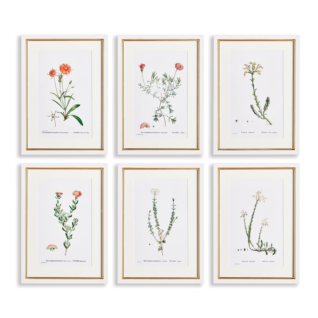 This set of coordinating flowers in blush tones is a traditional collection. Finished off with white wood frames with a gold detail, adding a formal feel. A beautiful way to furnish home office, study or entry.