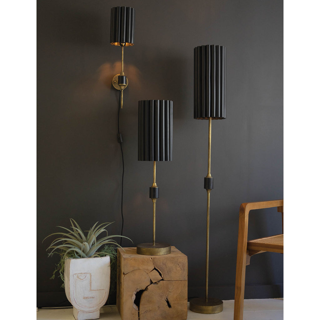 Fluted Black & Antique Gold Floor Lamp
