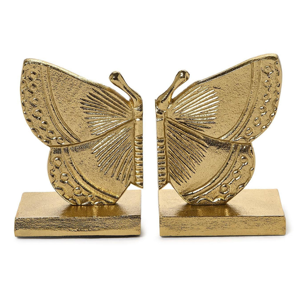 Bring a touch of whimsical elegance to your bookshelf with our Fluttering Butterfly Bookends. Handcrafted from aluminum, these stunning bookends showcase intricate details and a beautiful gold finish that effortlessly elevates any space. Whether adorning a cozy reading nook or adding charm to a study, these bookends are both decorative and functional. Let these graceful butterflies hold your favorite novels in place while adding a chic touch to your dècor.