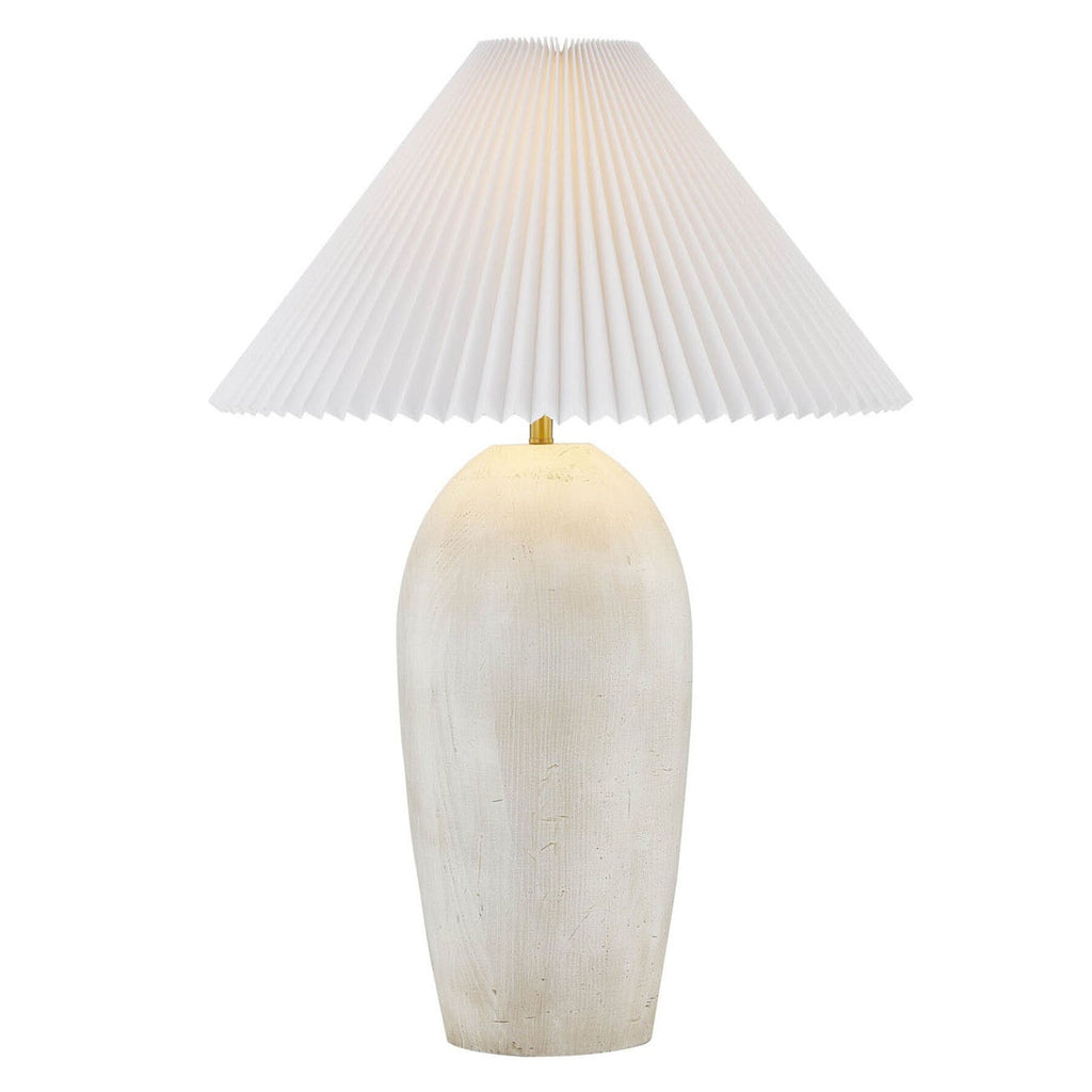 The perfect modern table lamp does exist! This minimalistic off-white lamp, accented with a subtle taupe wash along its elongated base, brings a chic, polished vibe to your space. Striking the ideal balance between sleek design and understated elegance, it's topped with a pleated empire shade and gold hardware for just the right touch of charm.
