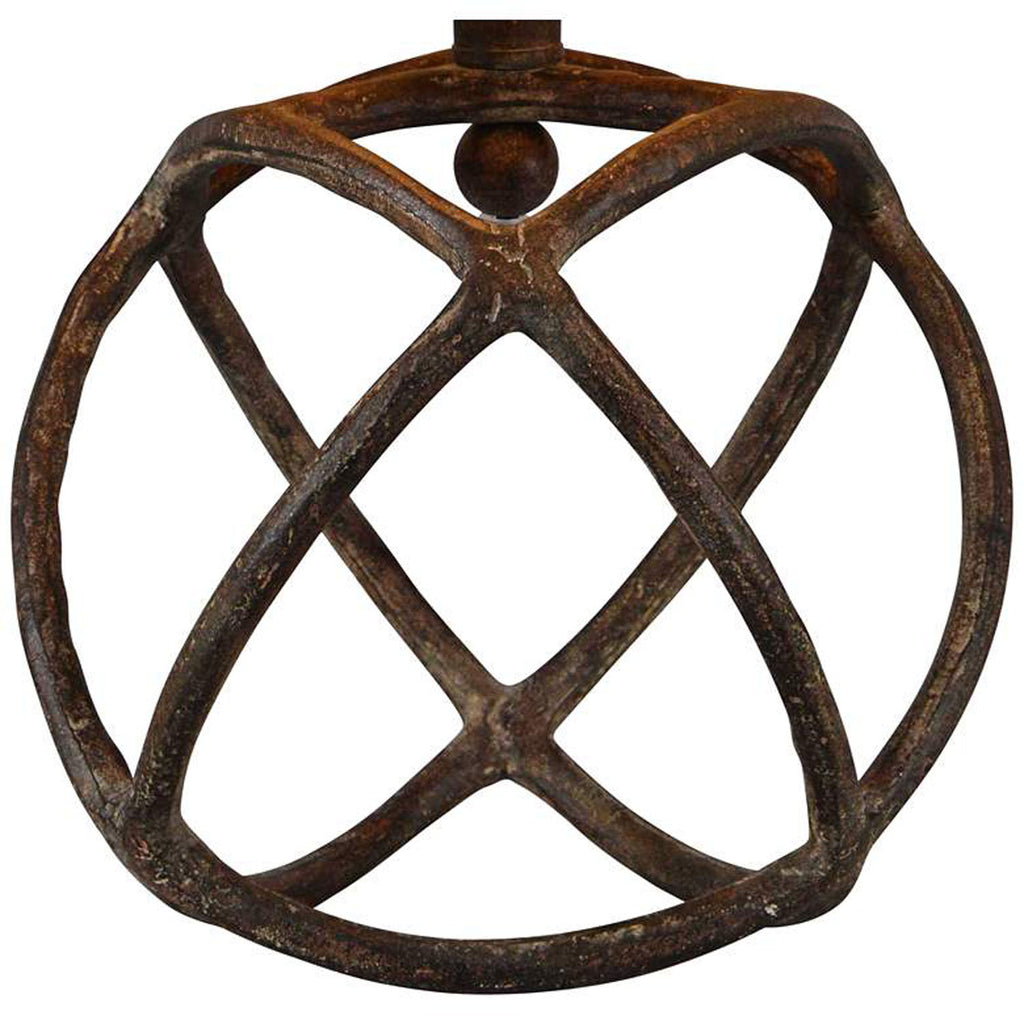 A stunning, handcrafted metal orb base in an antique bronze finish, the Duncan is the perfect accent to any room for a dash of rustic appeal! Its base is features a unique design of crossing rings within an orb add a contemporary twist to this otherwise rustic piece. Its all finished off with matching harp and finial and a oatmeal linen drum shade.