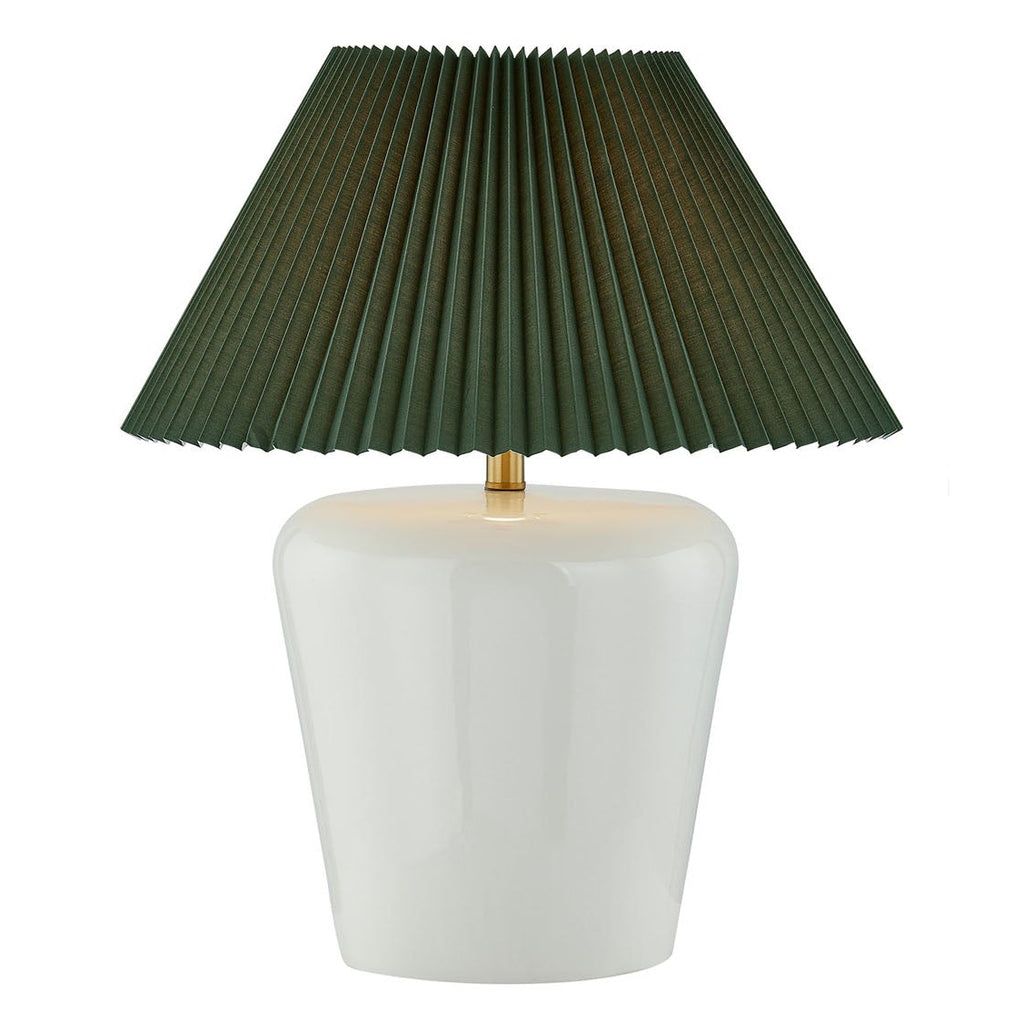 The Junie Table Lamp effortlessly blends clean lines with an elevated mix of materials. Its glossy ivory ceramic base is paired with a whimsical green pleated shade, creating a one-of-a-kind design. While rooted in contemporary style, Junie exudes a hint of old-world charm, making it the best of both worlds. Whether standing solo on a console or styled in pairs on nightstands, this lamp delivers a true wow factor to any space.