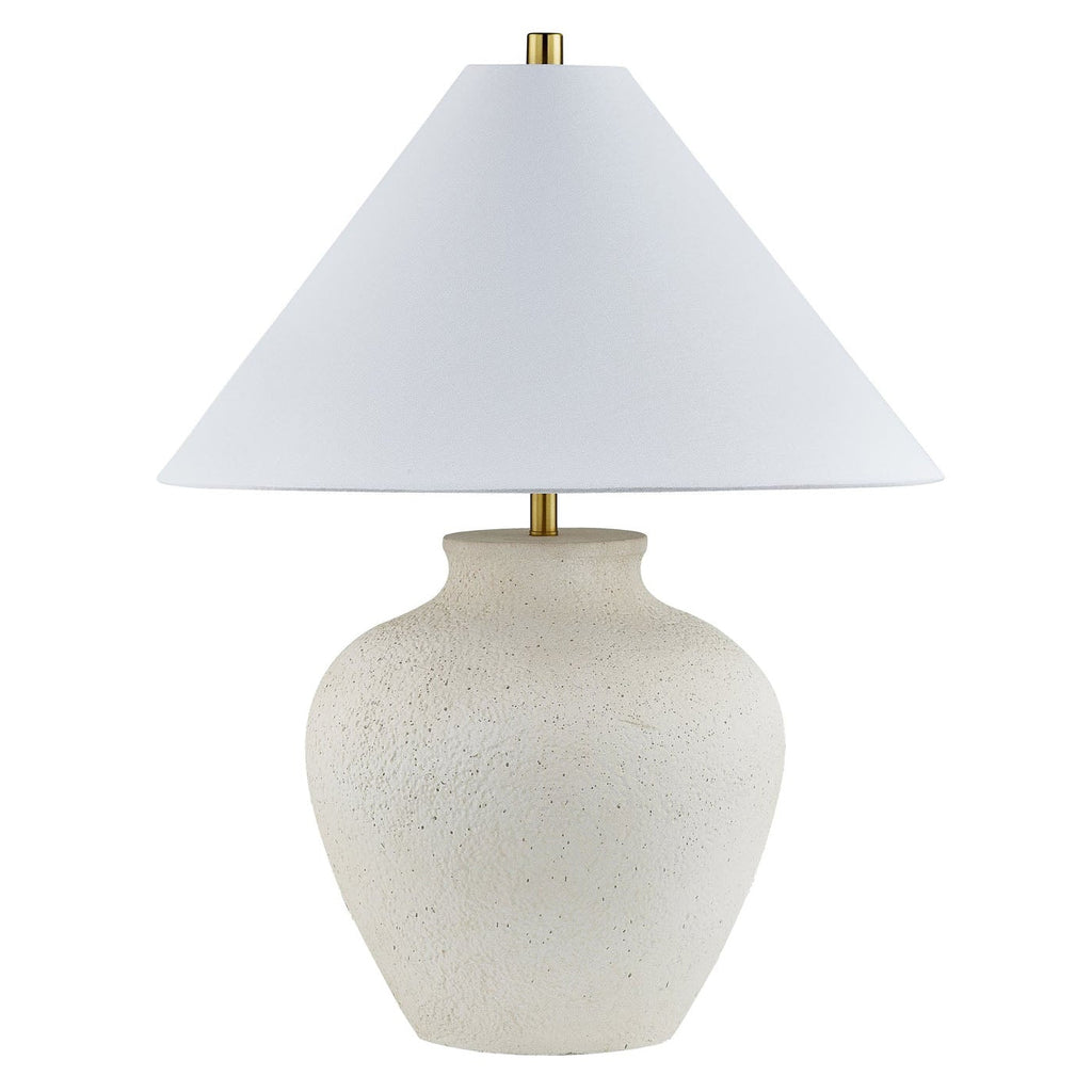 Monroe is where contemporary charm meets organic style. With a neutral and organic style, she embodies the essence of sophistication. Monroe captivates with her stone-like body, gracefully sculpted into a soft curved urn shape, adding texture and depth to any space. Adorned with a gold neck, harp, and finial, and topped with a white hardback empire shade, Monroe seamlessly complements any decor style, from entryways to bedrooms, infusing every corner with her versatile allure.