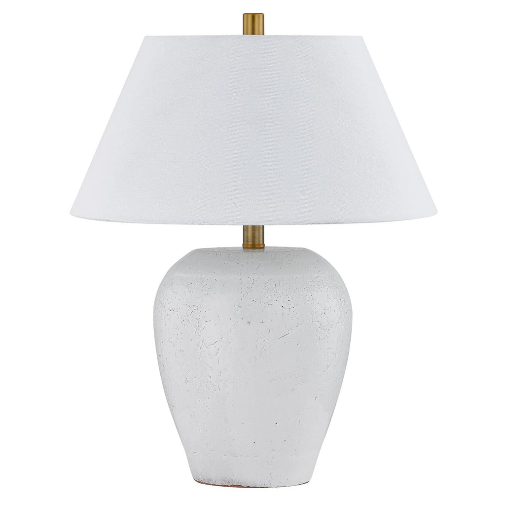 This table lamp offers a laid-back contemporary style with its armless urn silhouette and smooth, glossy white ceramic base. Gold hardware and an empire shade complete the look, blending elegance and timeless appeal. A versatile piece, it effortlessly complements any design style or decor.