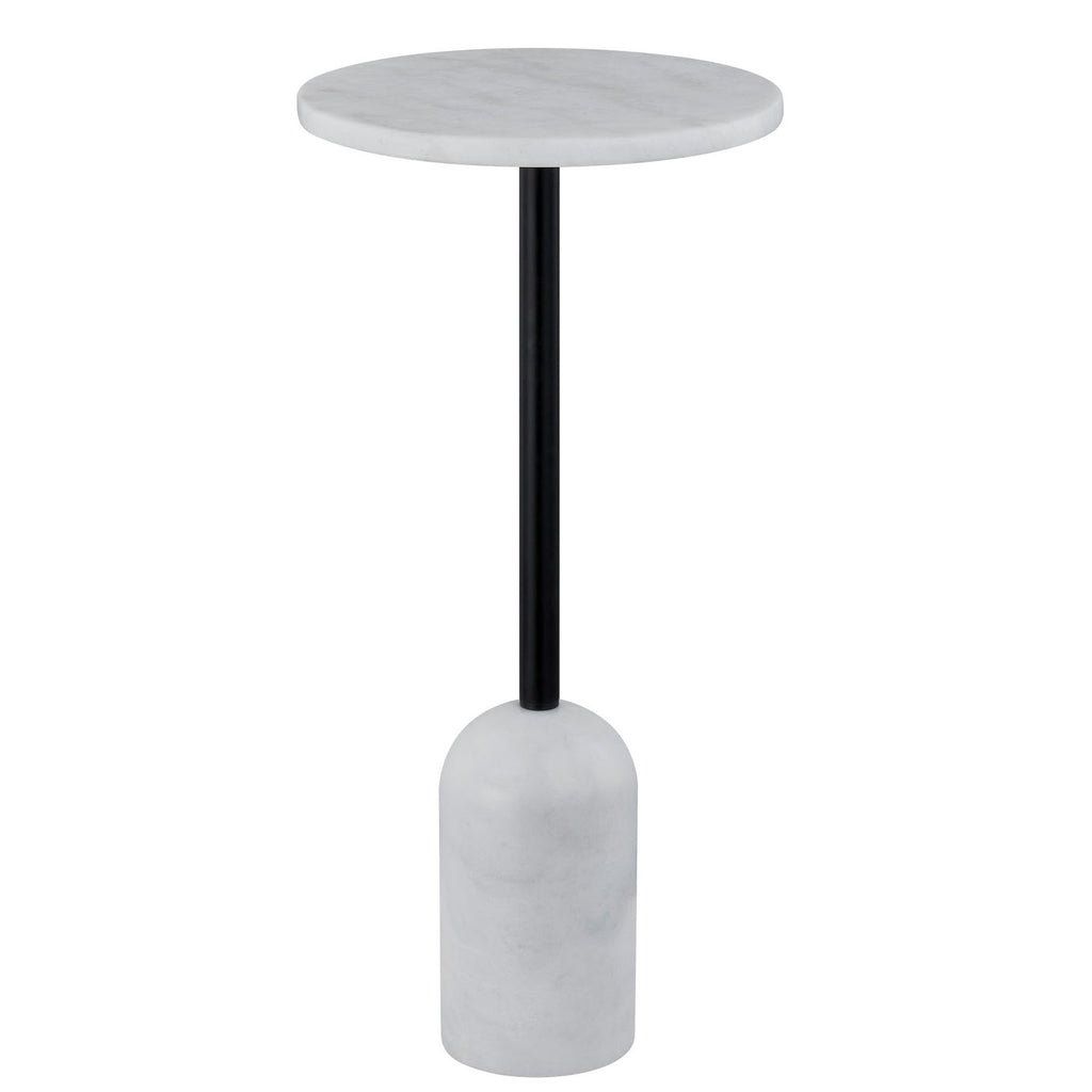 The Sonny Marble Table brings a playful yet sophisticated vibe to any space with its trendy contemporary design and mid-century influences. Its unique elongated dome-shaped base and luxurious marble top exude elegance, while the slim black frame adds a sleek, modern touch. Perfect for smaller spaces, this chic end table is the ideal spot to rest a drink next to your favorite chair.