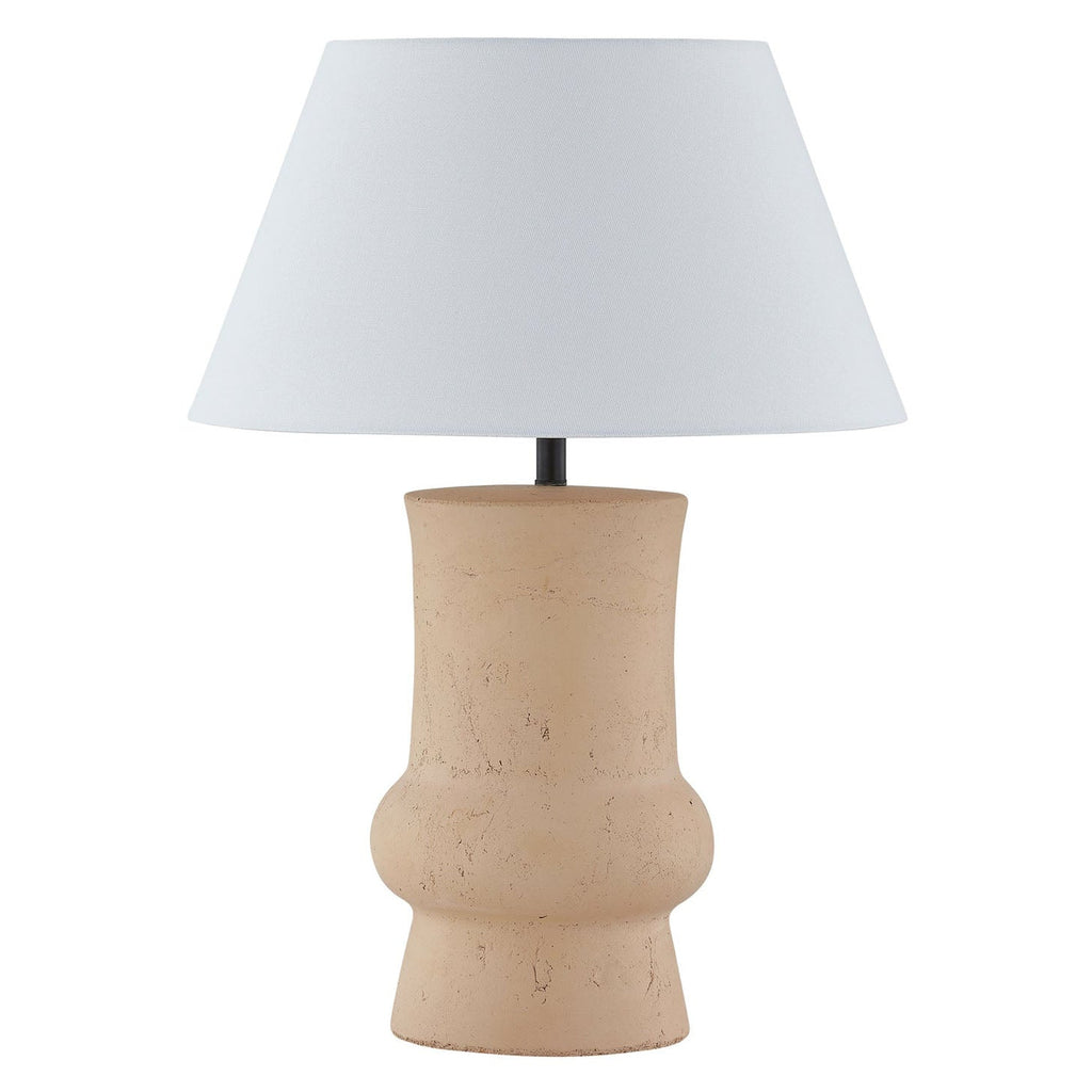 The Timber Table Lamp features a sculptural ceramic base with a warm, earthy finish that highlights its organic texture. Its curvy silhouette adds a sense of modern artistry, while the tapered white shade provides a soft, diffused glow. Black hardware adds a striking contrast, enhancing its modern appeal. This lamp brings warmth and character to any space, making it a perfect addition to bedside tables, consoles, or cozy reading nooks.