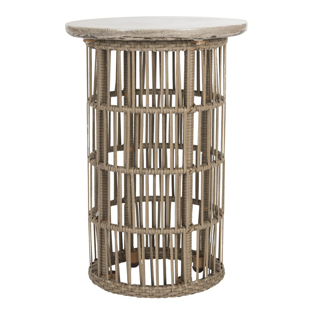 Designed for maximum versatility and value, this petite concrete indoor-outdoor side table packs a powerful punch. Its synthetic rattan cover boasts style while its invisible aluminum frame lends substance to any outdoor entertaining area or living room.