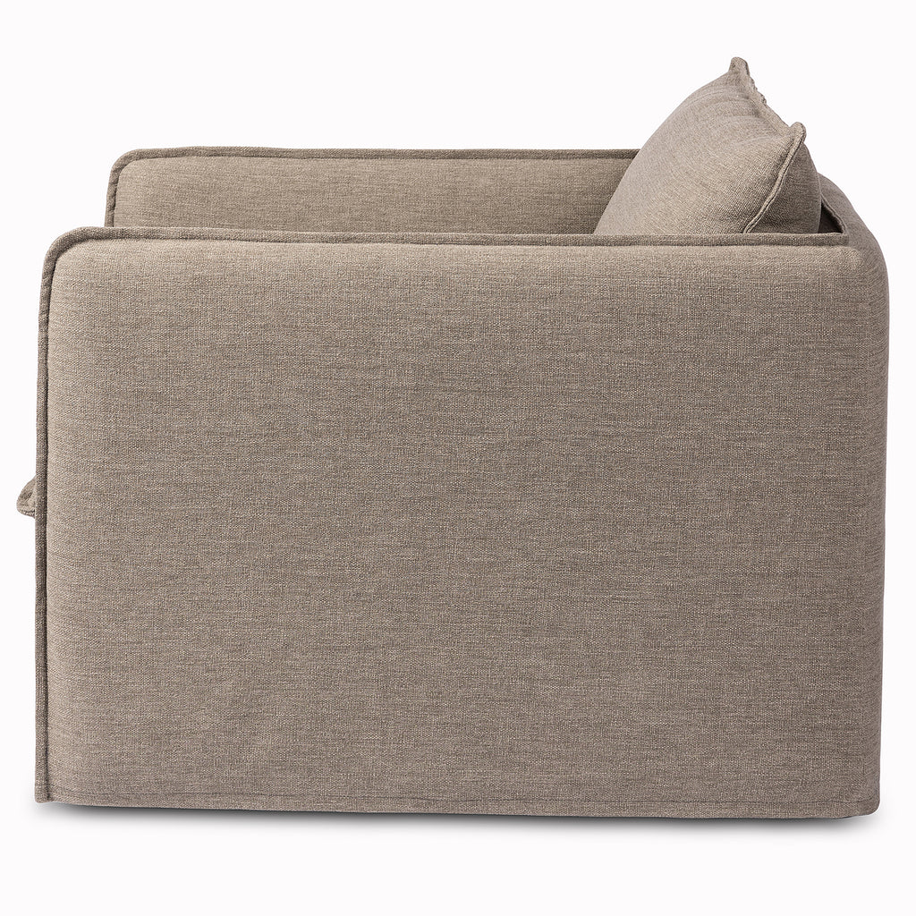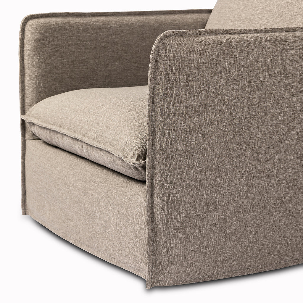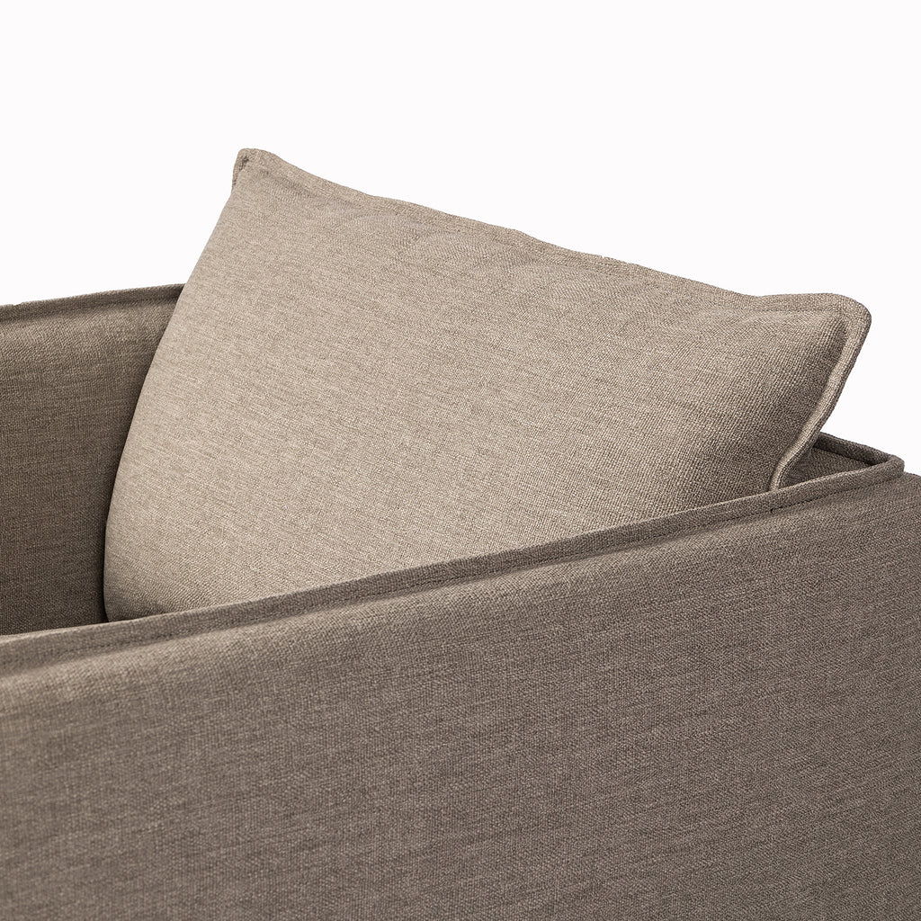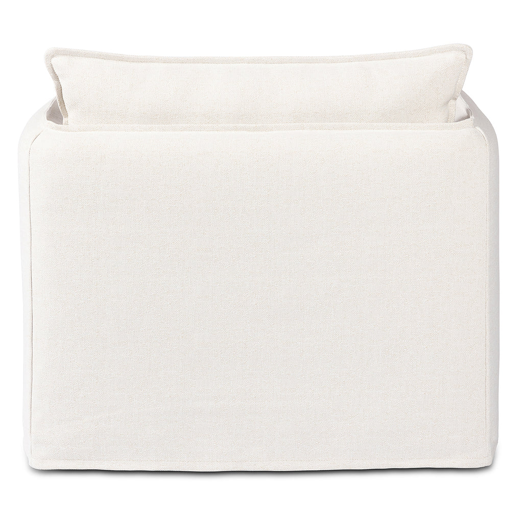 An outdoor interpretation of an in Door silhouette. This 360-degree outdoor swivel chair offers a clean, contemporary feel with relaxed casual comfort. The seat and loose back cushions feature removable, washable slipcovers with a simple flange detail. Sustainably made with zero waste, luxurious Italian upholstery places a new and unique spin on in Door/outdoor seating, offering soft, durable fabric that's highly resistant to sun, stains, mold and abrasion. Cover or store in Doors during inclement weather and when not in use.
