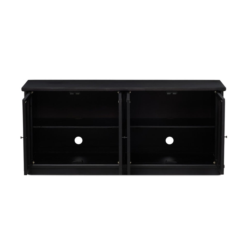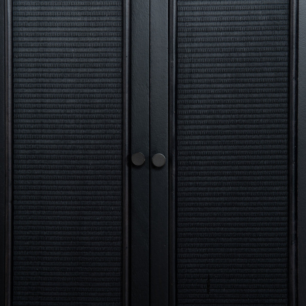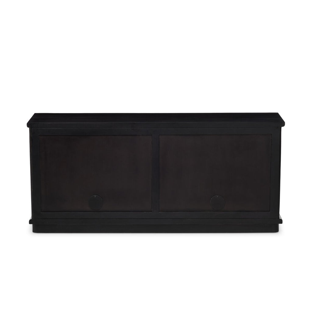 Solid mango and black paper cane fuse for a truly timeless sideboard look. A woven raffia pattern gives reeding-like texture to an eight panel, four door front. The perfect piece for storing favorite linens and serveware.