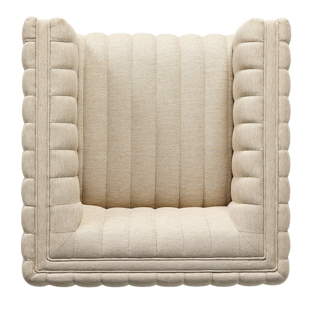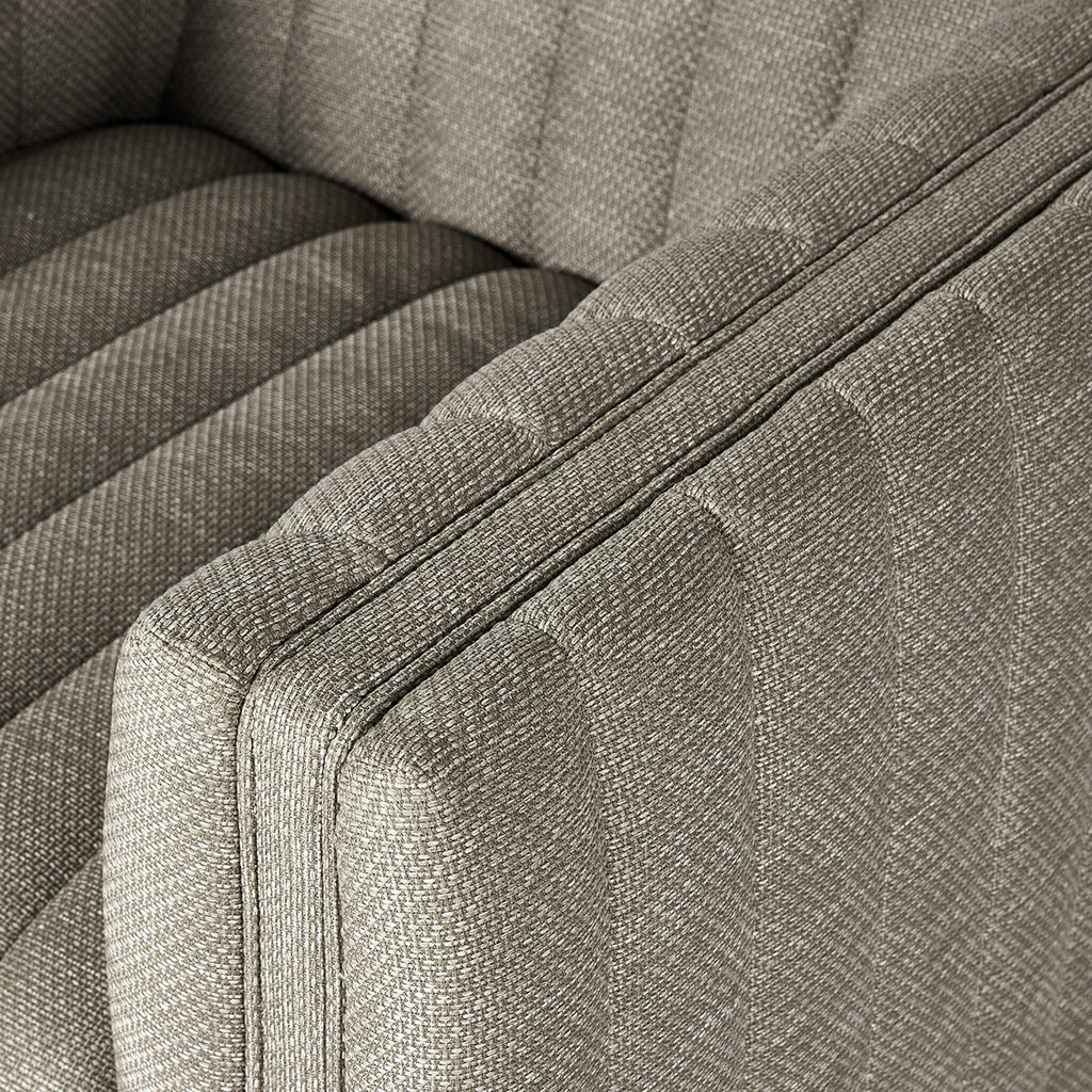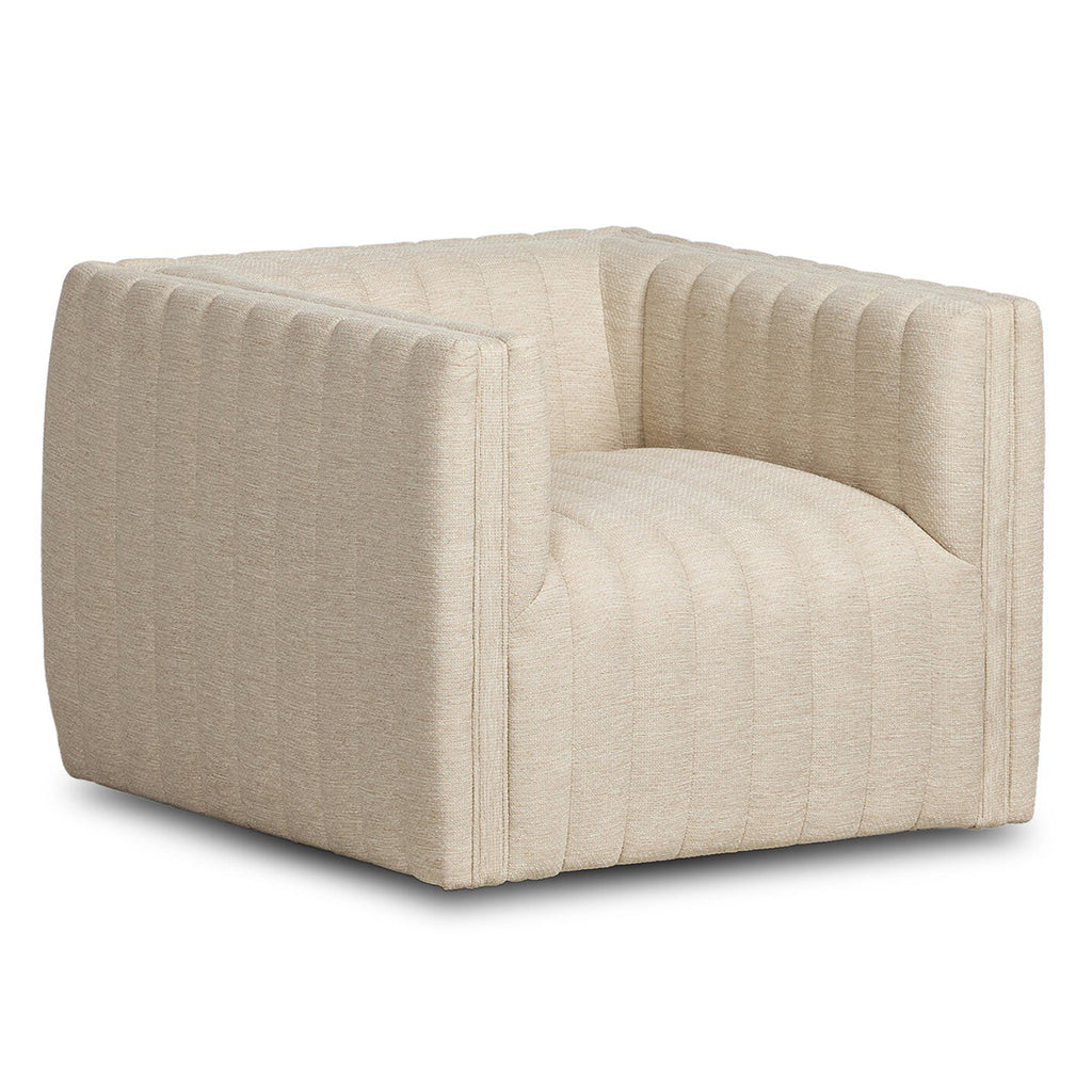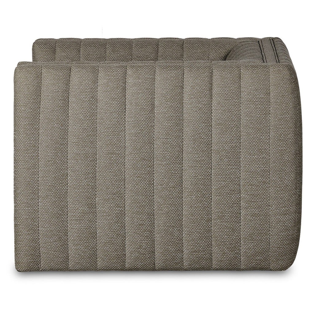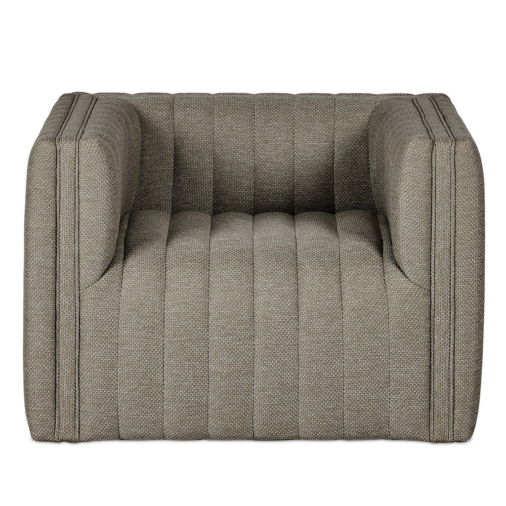 The classic library chair, updated for the outdoors. Lightly textured upholstery and dramatic channeling invite you to settle in, with a 360-degree swivel that delivers from every angle. Cover or store indoors during inclement weather and when not in use.