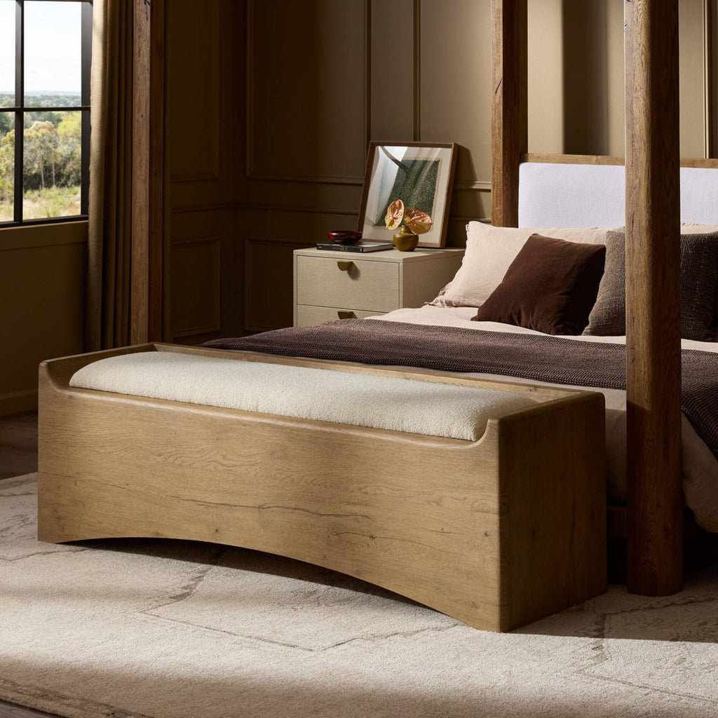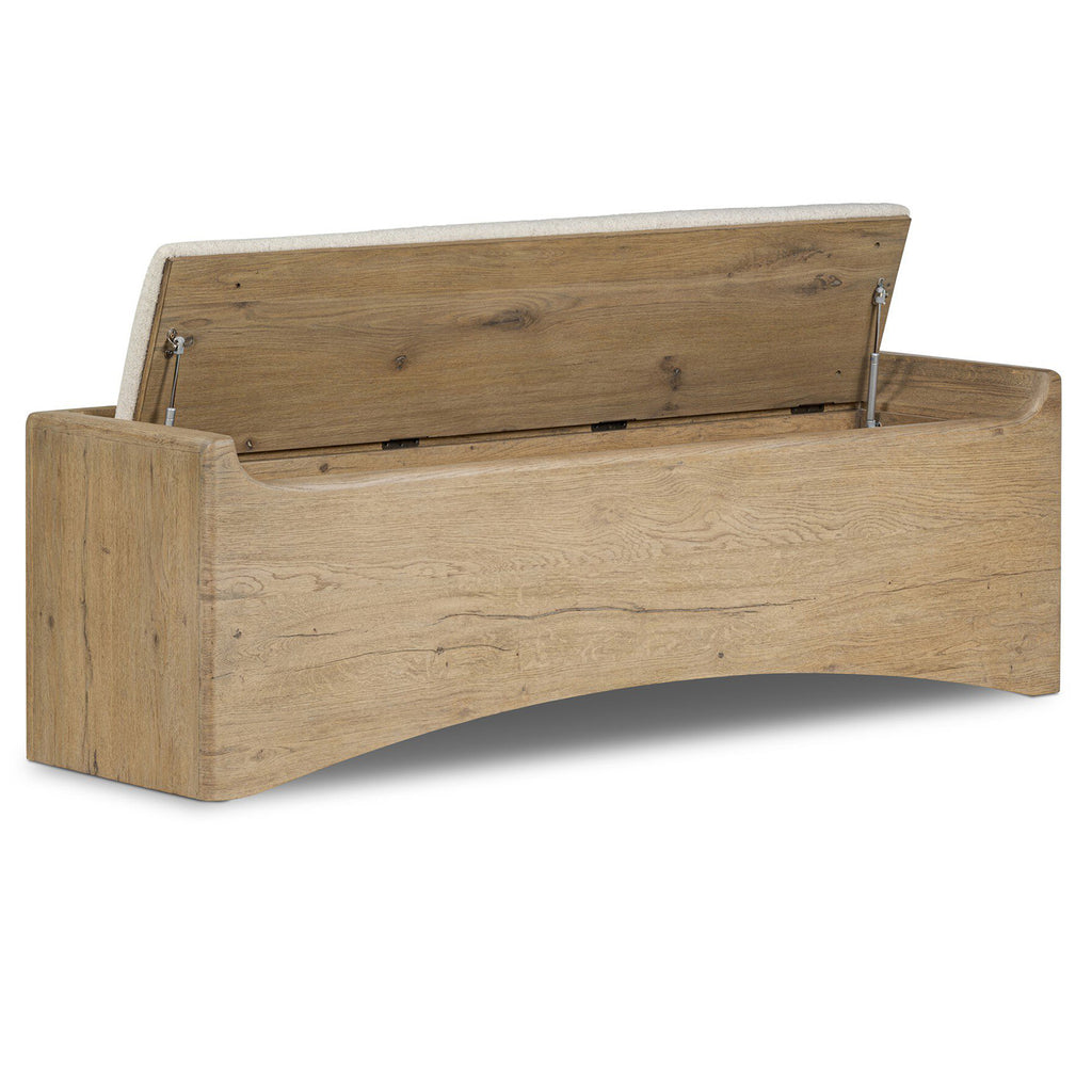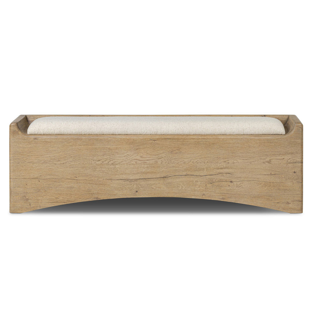 Create extra storage space wherever it's needed. This oak storage bench doubles as seating with its removable cushion upholstered in a neutral performance fabric. A scooped base lightens the look. Performance fabrics are specially created to withstand spills, stains, high traffic and wear, ensuring long-term comfort and unmatched durability.