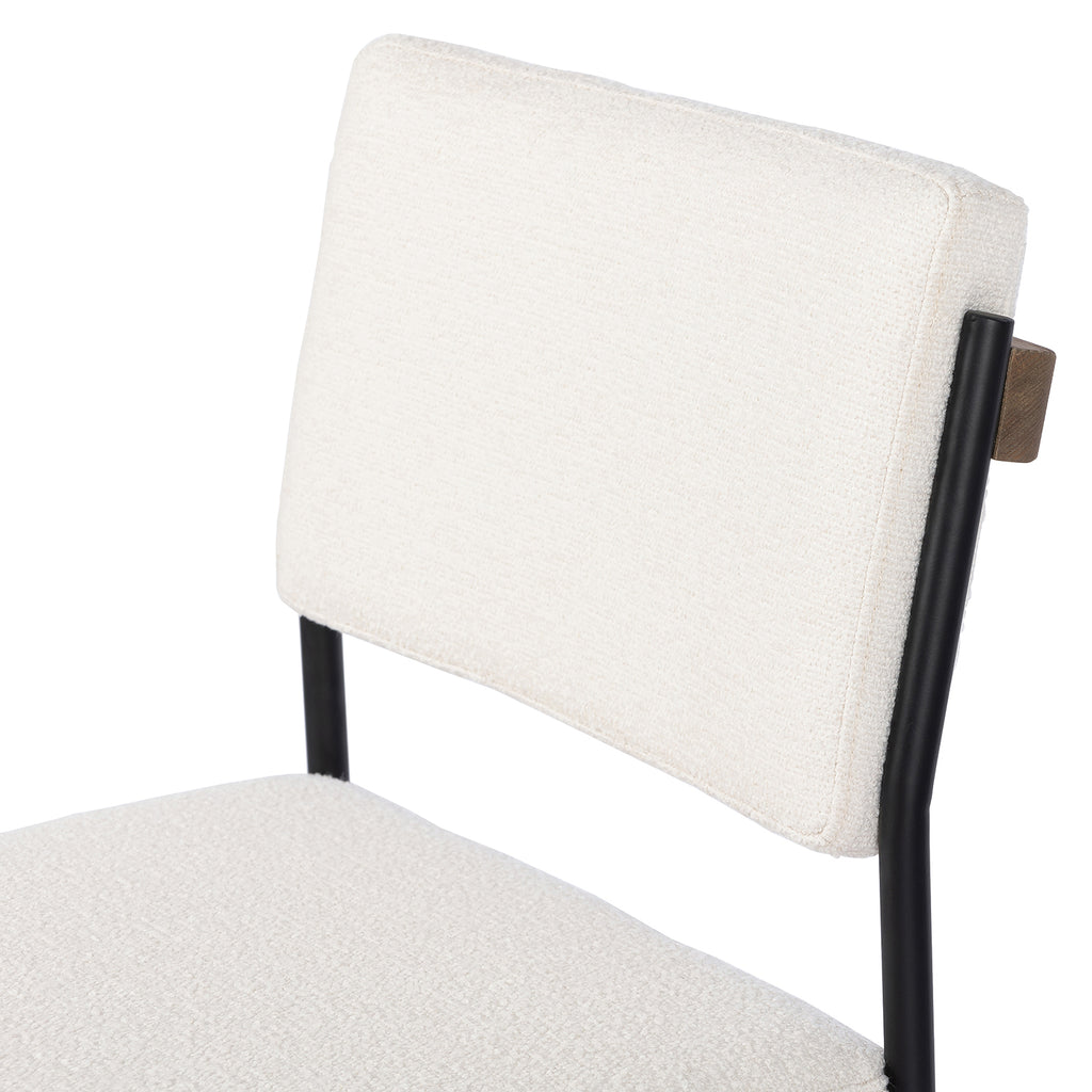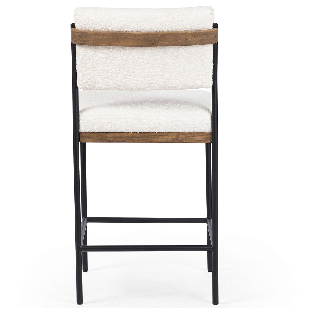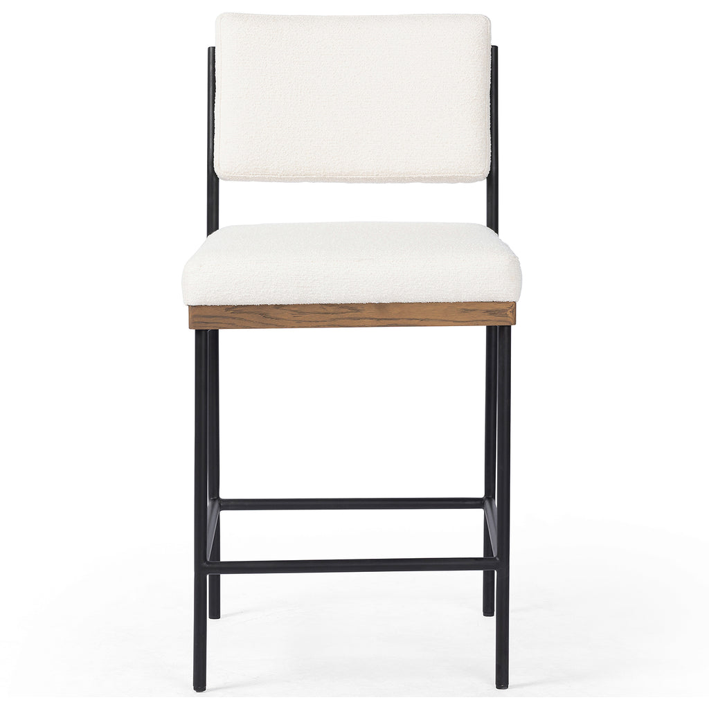 Bring a crisp, clean look to the counter. Slim, black-finished iron forms an airy frame for pristinely tailored performance fabric, with solid oak decking for an eye-catching material mix. Performance fabrics are specially created to withstand spills, stains, high traffic and wear, ensuring long-term comfort and unmatched durability.
