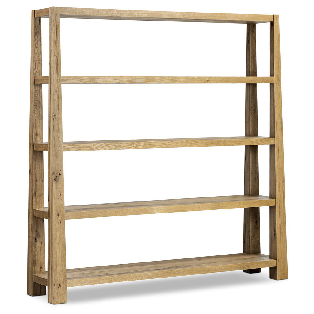 Display your favorite books and treasures in a wide-frame bookcase inspired by Nordic minimalism. Crafted of aged natural oak, its clean, versatile look mixes into a range of styles and spaces with ease.