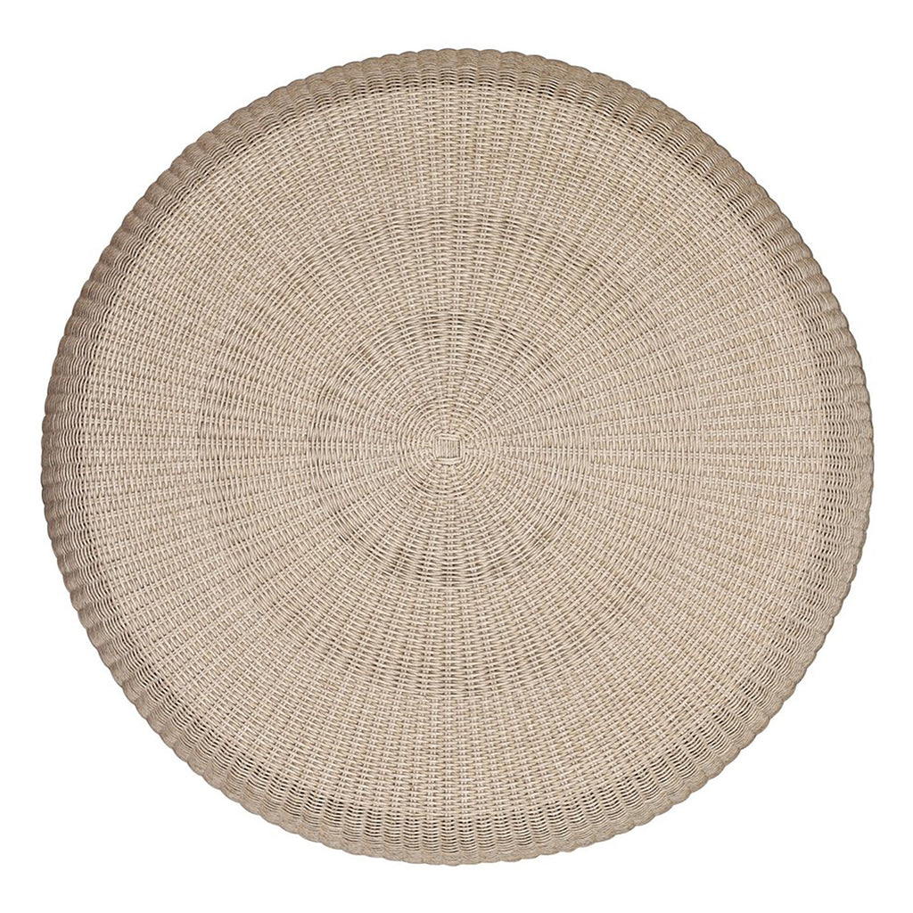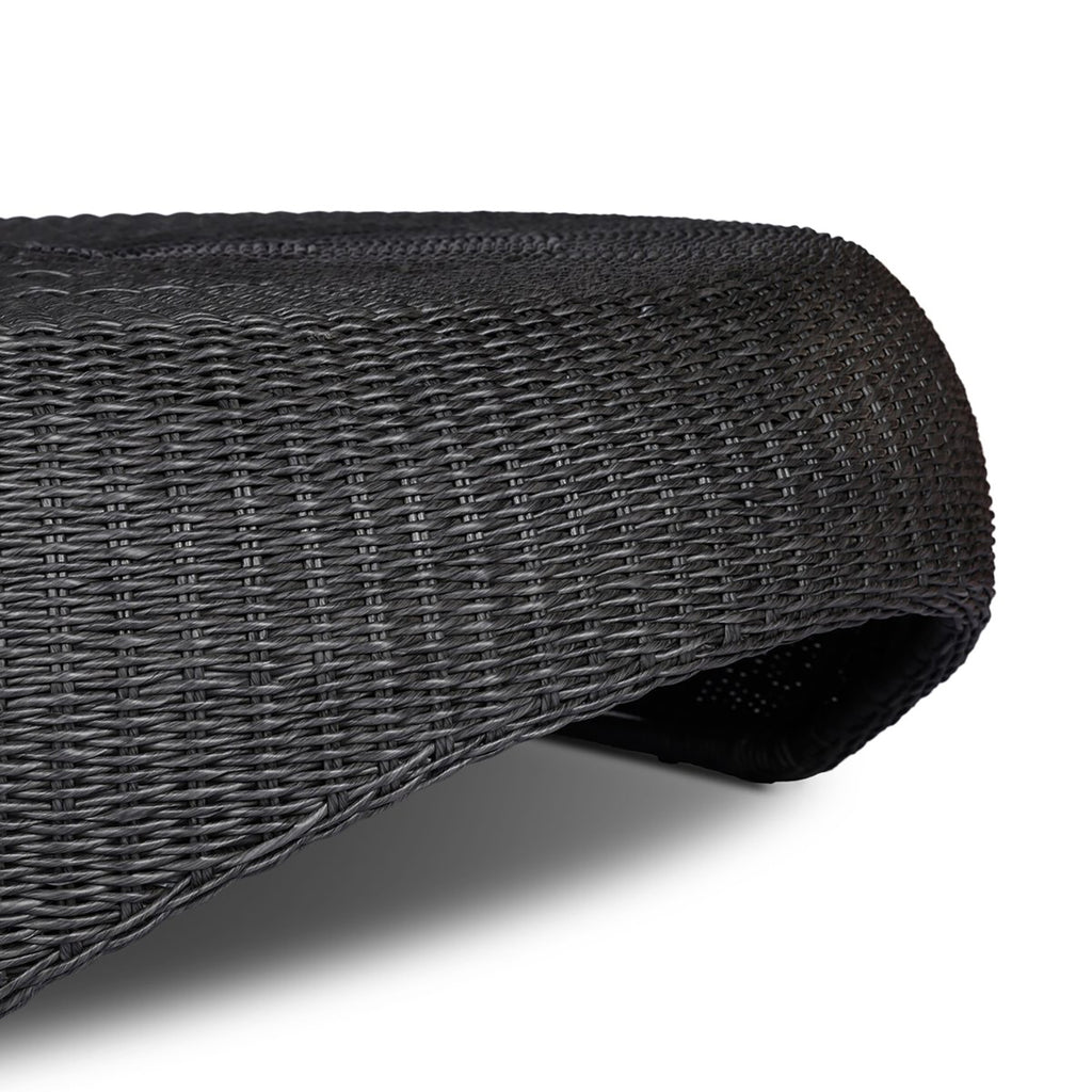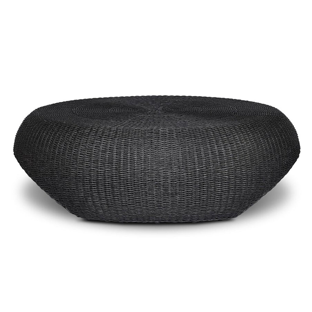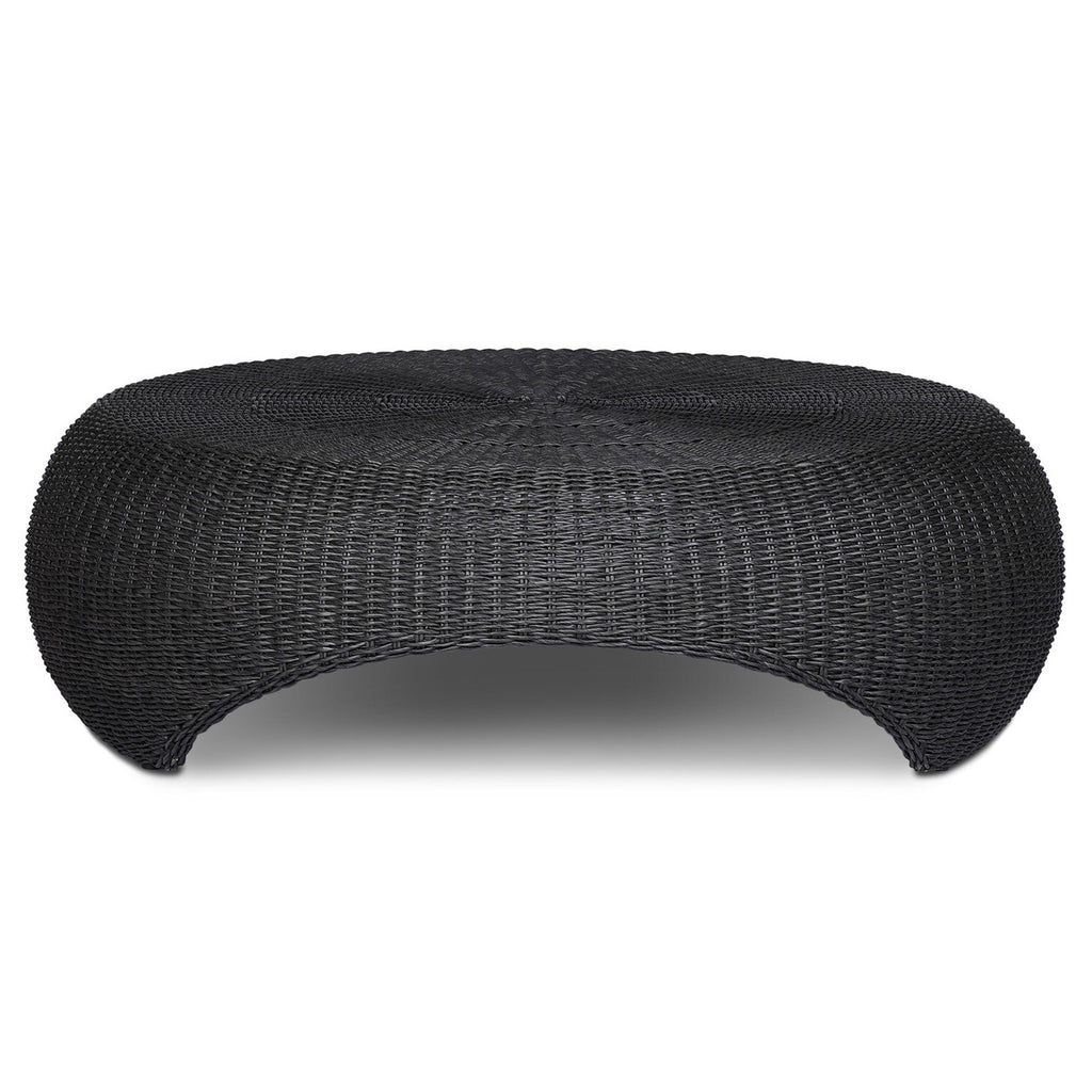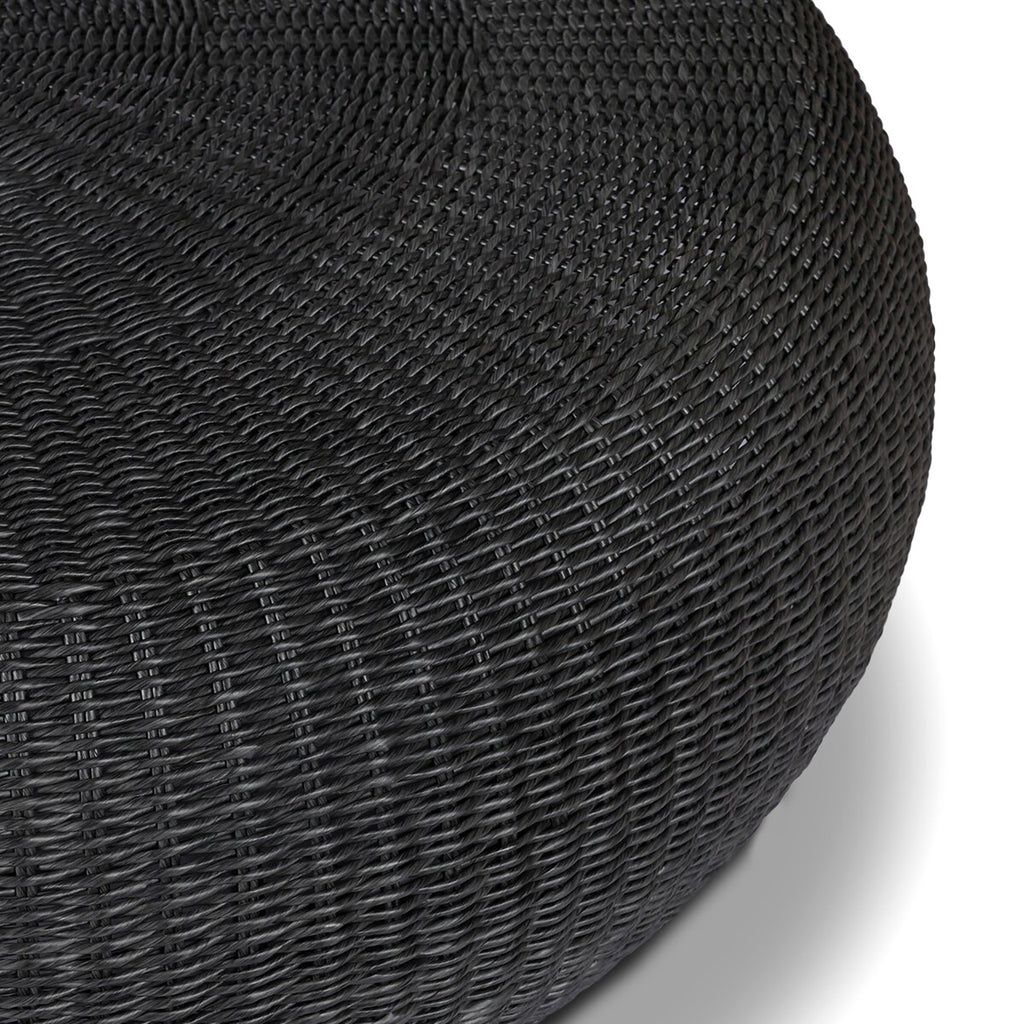 A classic round outdoor coffee table — with a twist. Fully woven and featuring bulbous sides and a round cutout detail for added dimension. Cover or store indoors during inclement weather and when not in use.