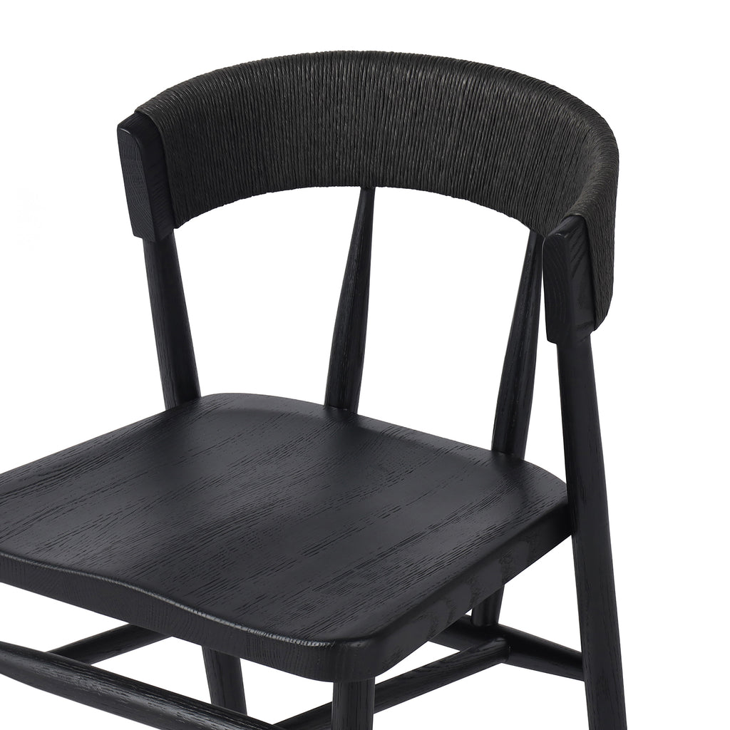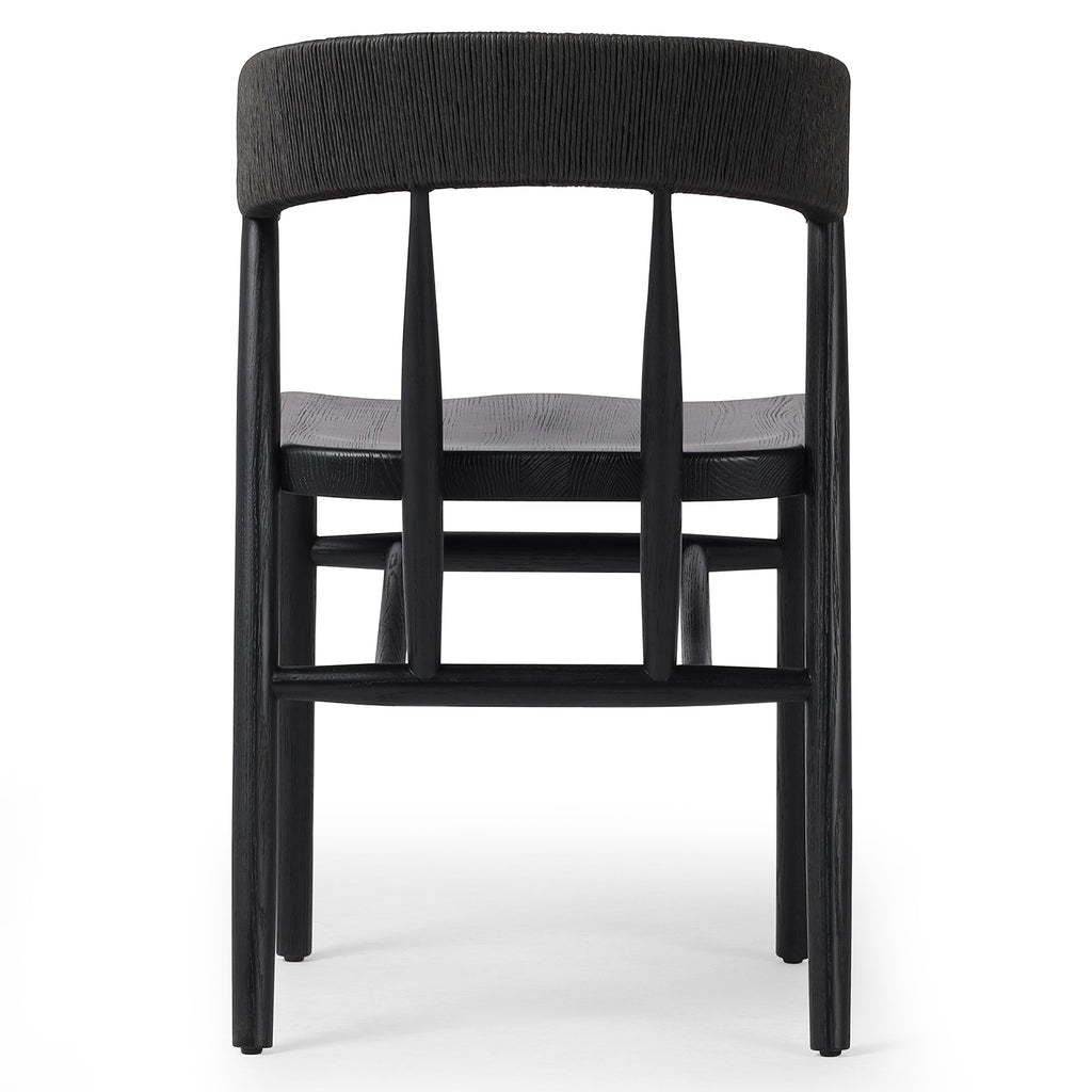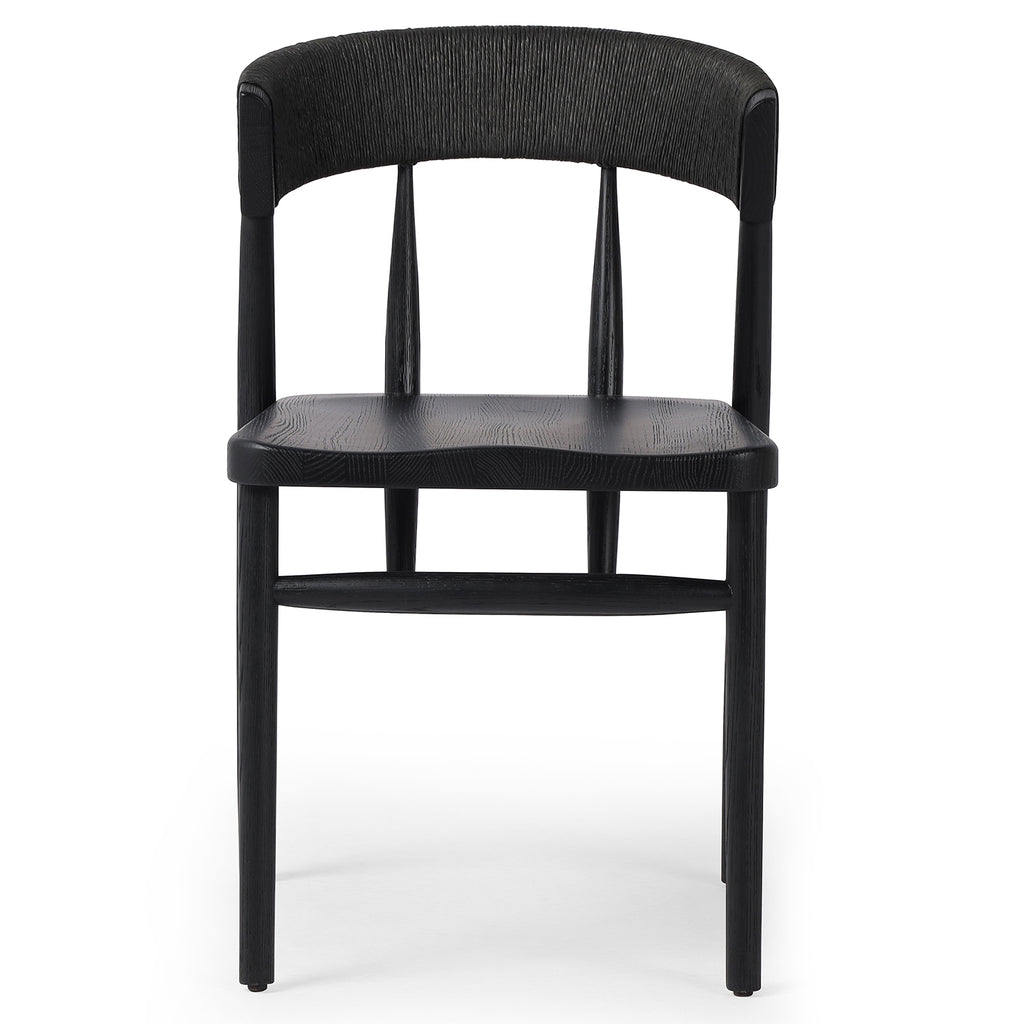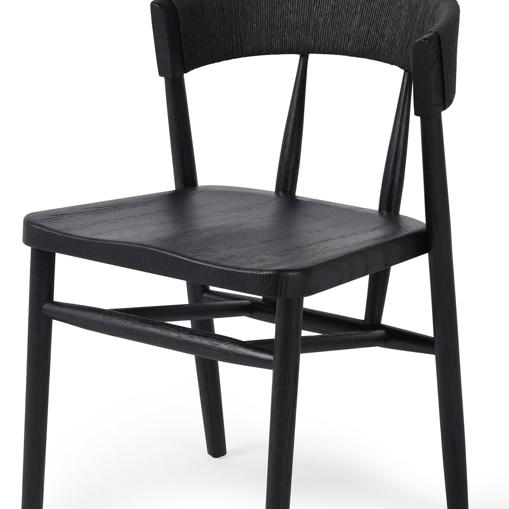 A solid oak dining chair defined by tapered legs and framing gives an updated look to the classic whistler chair. Finished with a paper rush wrapped detail on the back.