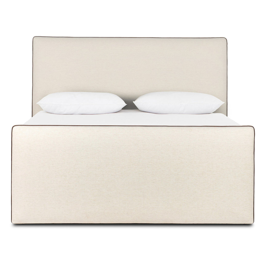 Streamlined with contrast piping, an upholstered bed offers relaxed comfort with an edge of modern detail. Upholstered in Crypton® performance fabric for a perfectly tailored look, the performance fabric is specially engineered for protection against stains, moisture and odor.