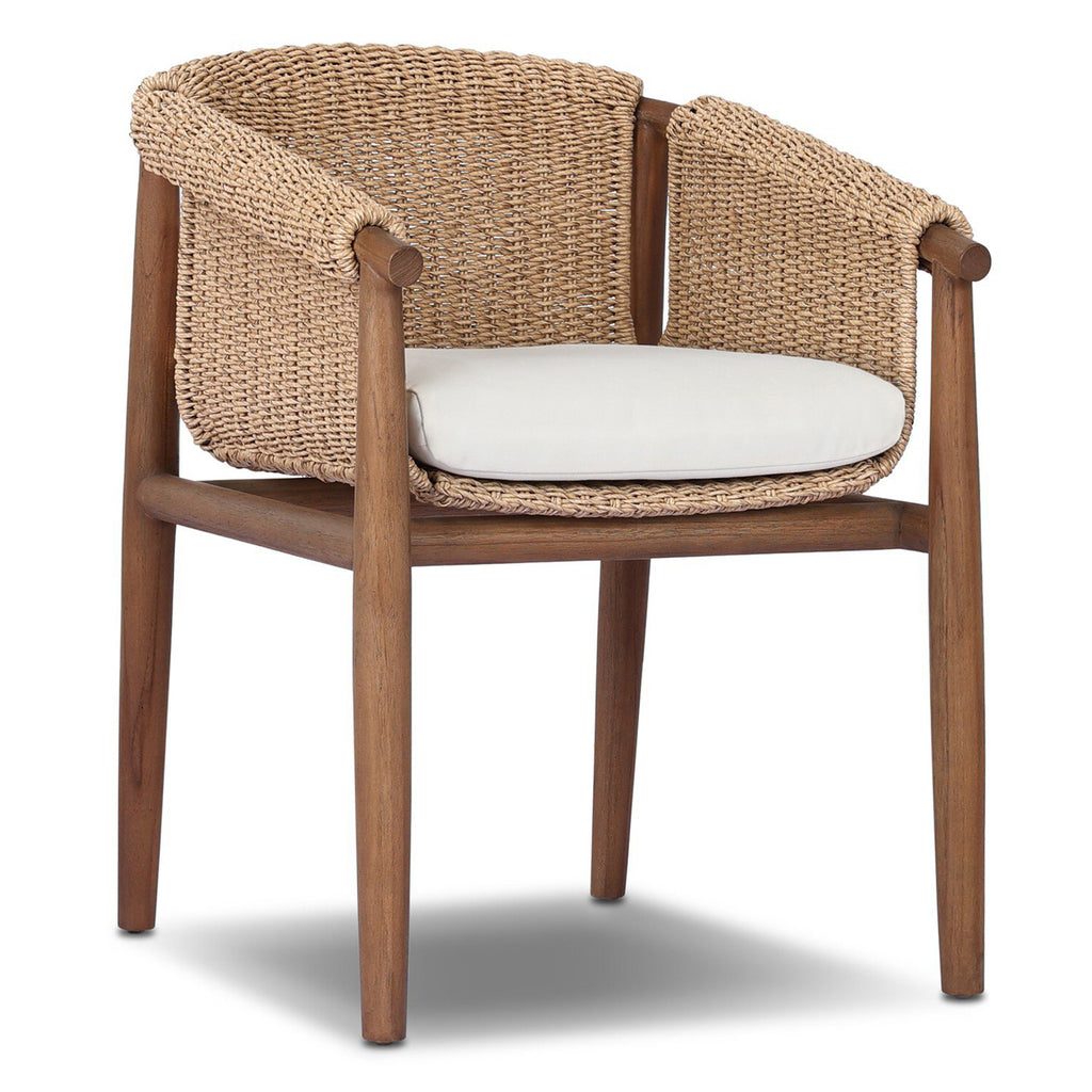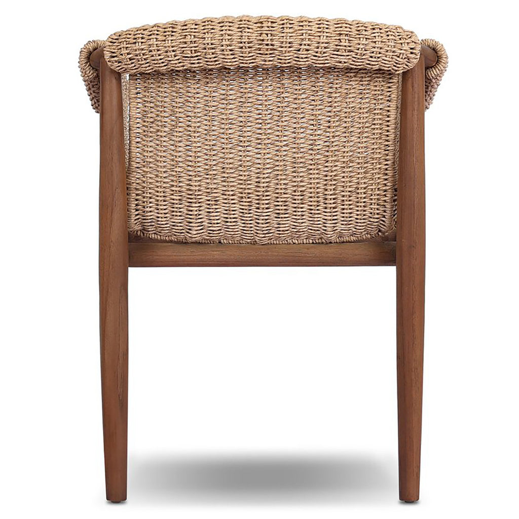 Bring home vintage inspiration. The sling shape of this outdoor dining chair features a reimagined bucket seat in woven faux hyacinth, finished with rounded tapered legs that mirror the shape of the frame. Cover or store indoors during inclement weather and when not in use.