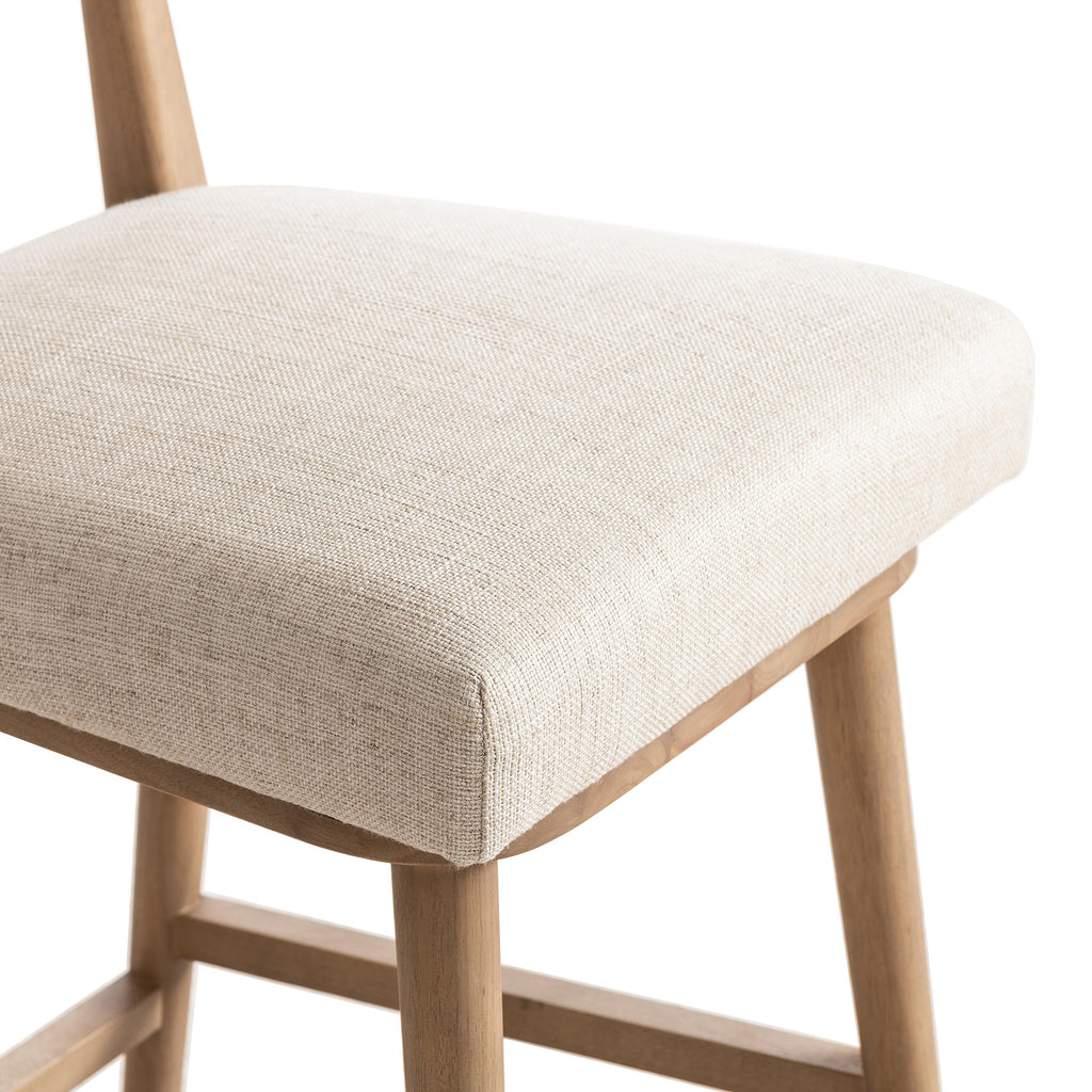 Natural solid parawood forms a curved barrel back on this everyday dining stool. Plush cushioned seat and back are upholstered in a textural woven fabric.