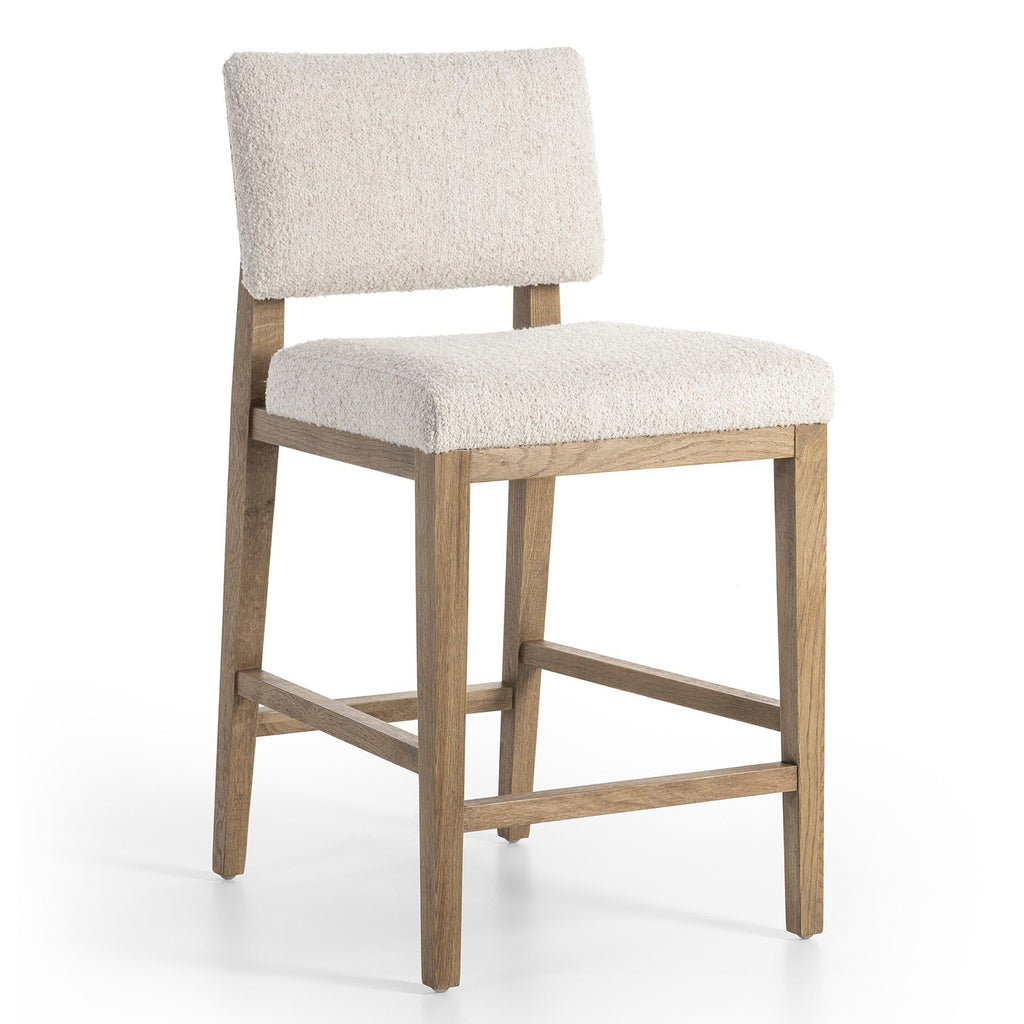 Get back to the basics with this understated modern dining seating. Its simple shape includes a split back design that lets the upholstery peek through. A toasted oak frame paired with cream fabric brings natural tonality to the chair.