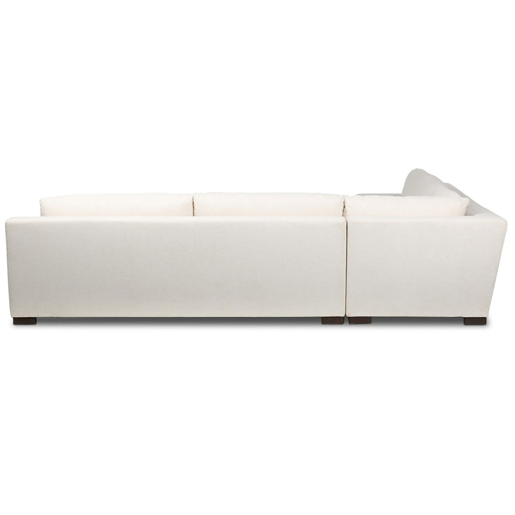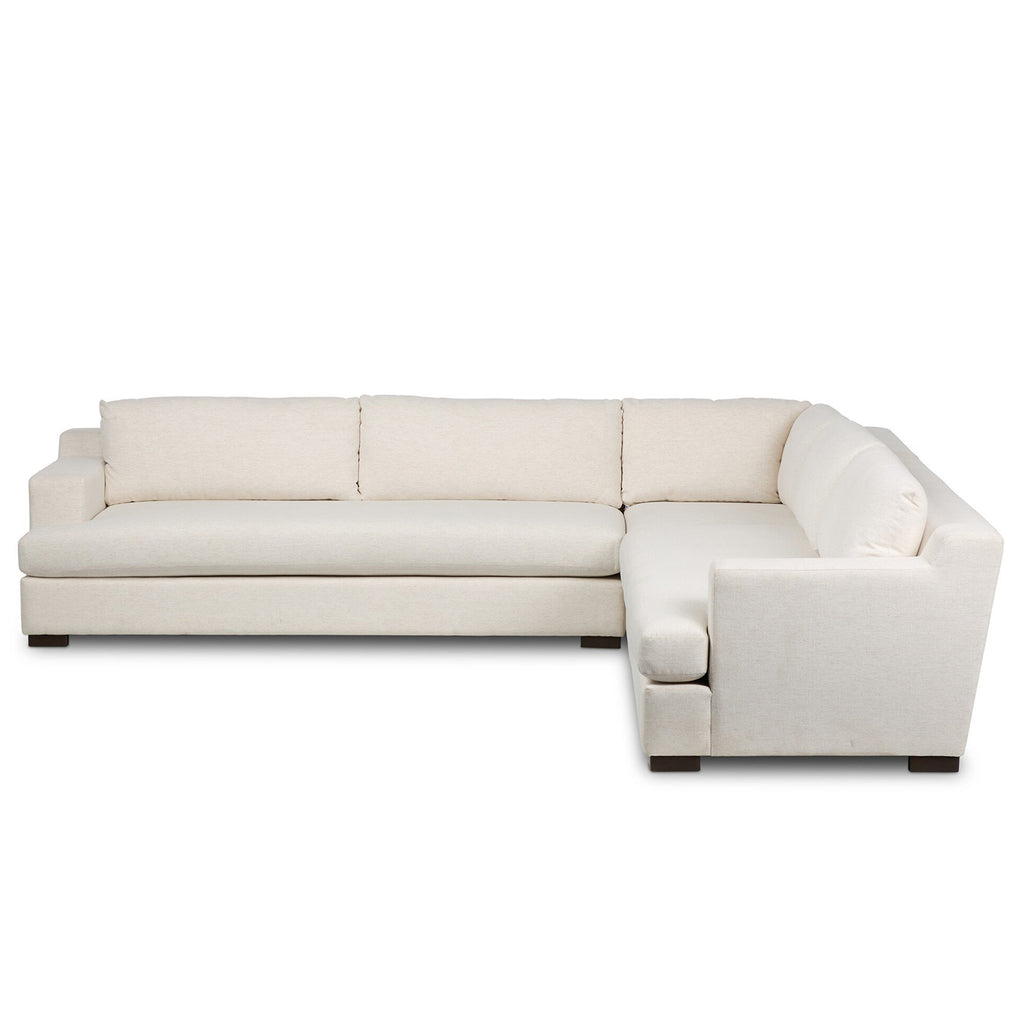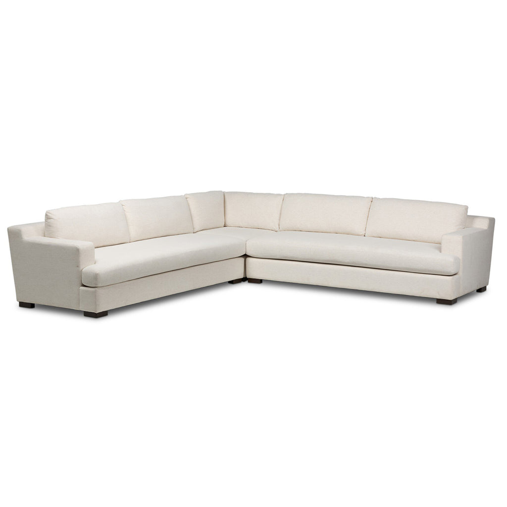 Modern shaping meets sink-in comfort for a piece that invites you and your guests to stay a little longer. The wide arms, slightly angled back and rectilinear edges on this three-piece sectional are softened with T-shaped cushions and an exaggerated bench-style seating in soft foam. Designed with S-spring suspension for a supportive sit and finished with chunky block legs made of solid wood below. Soft, easy to clean and free of PFAS, Crypton® performance fabric is specially engineered for protection against stains, moisture and odor.