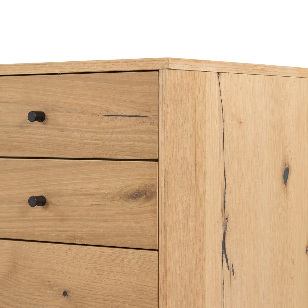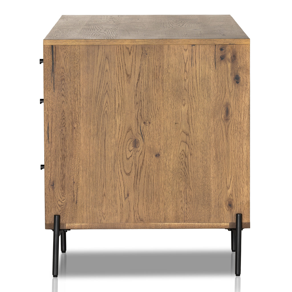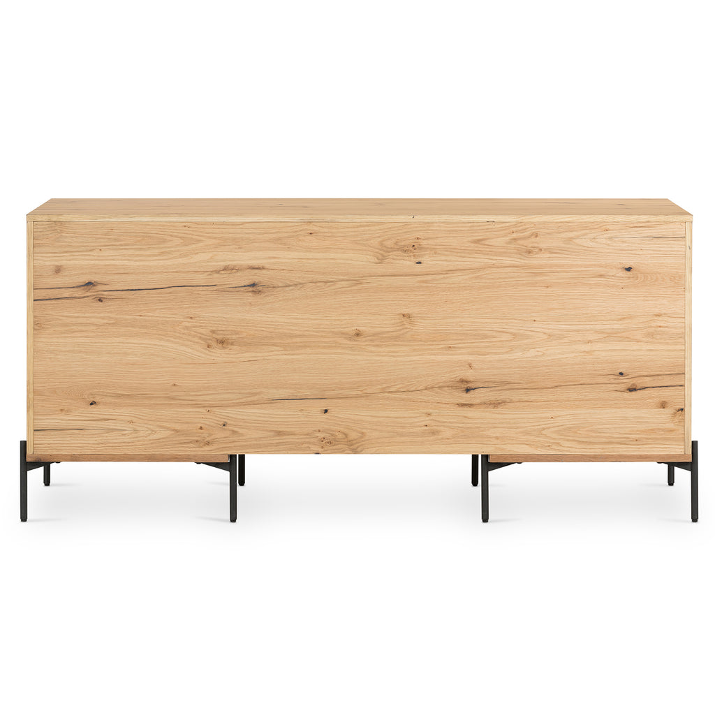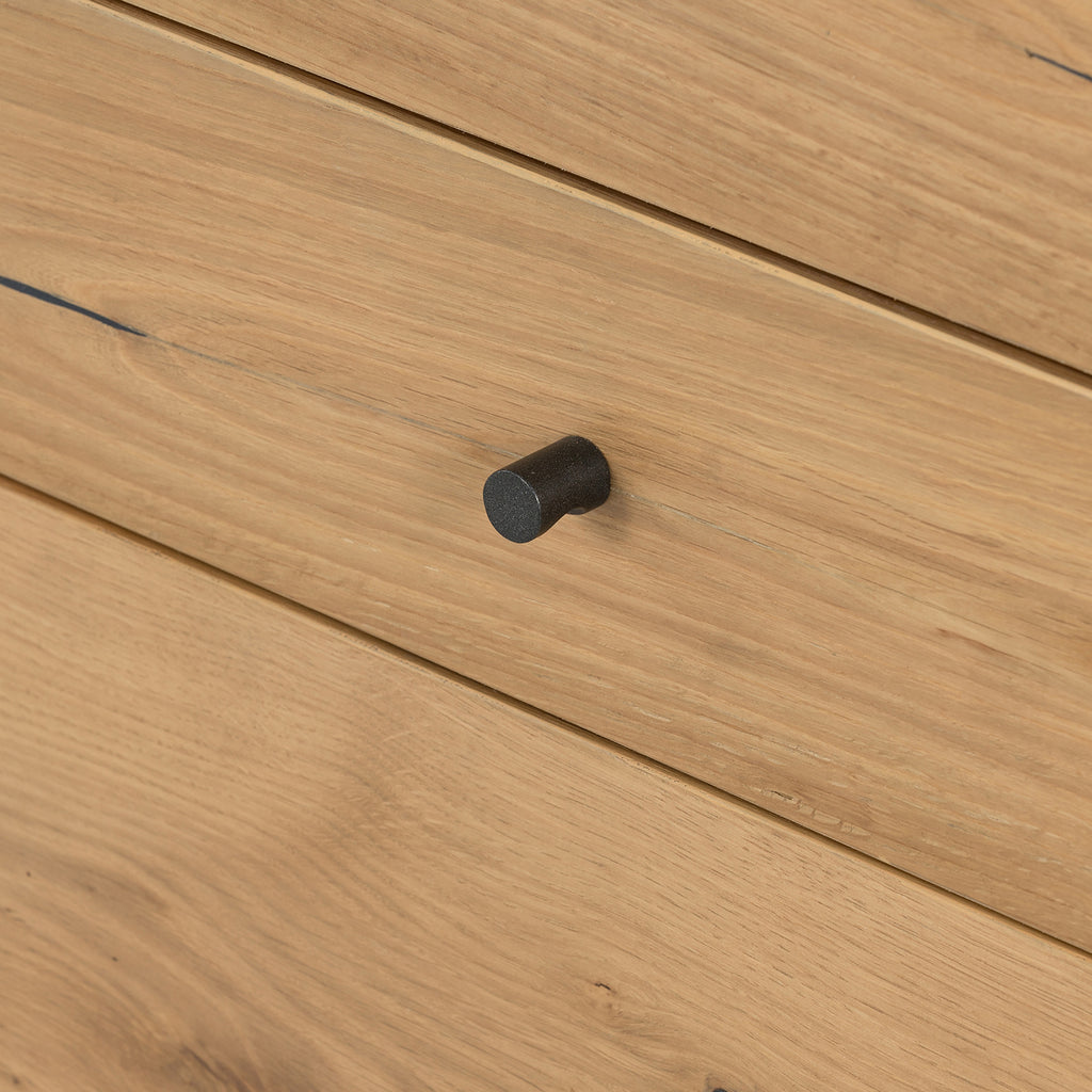 Streamlined and stylish. Light-finished oak and contrasting resin form a fashionable executive desk with roomy cabinetry plus four total drawers for ample storage space. A modesty panel and fully finished back grant the option to style anywhere in the room.