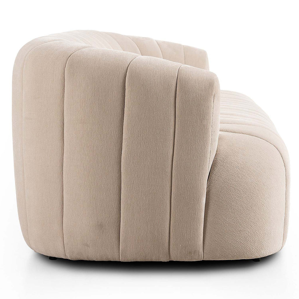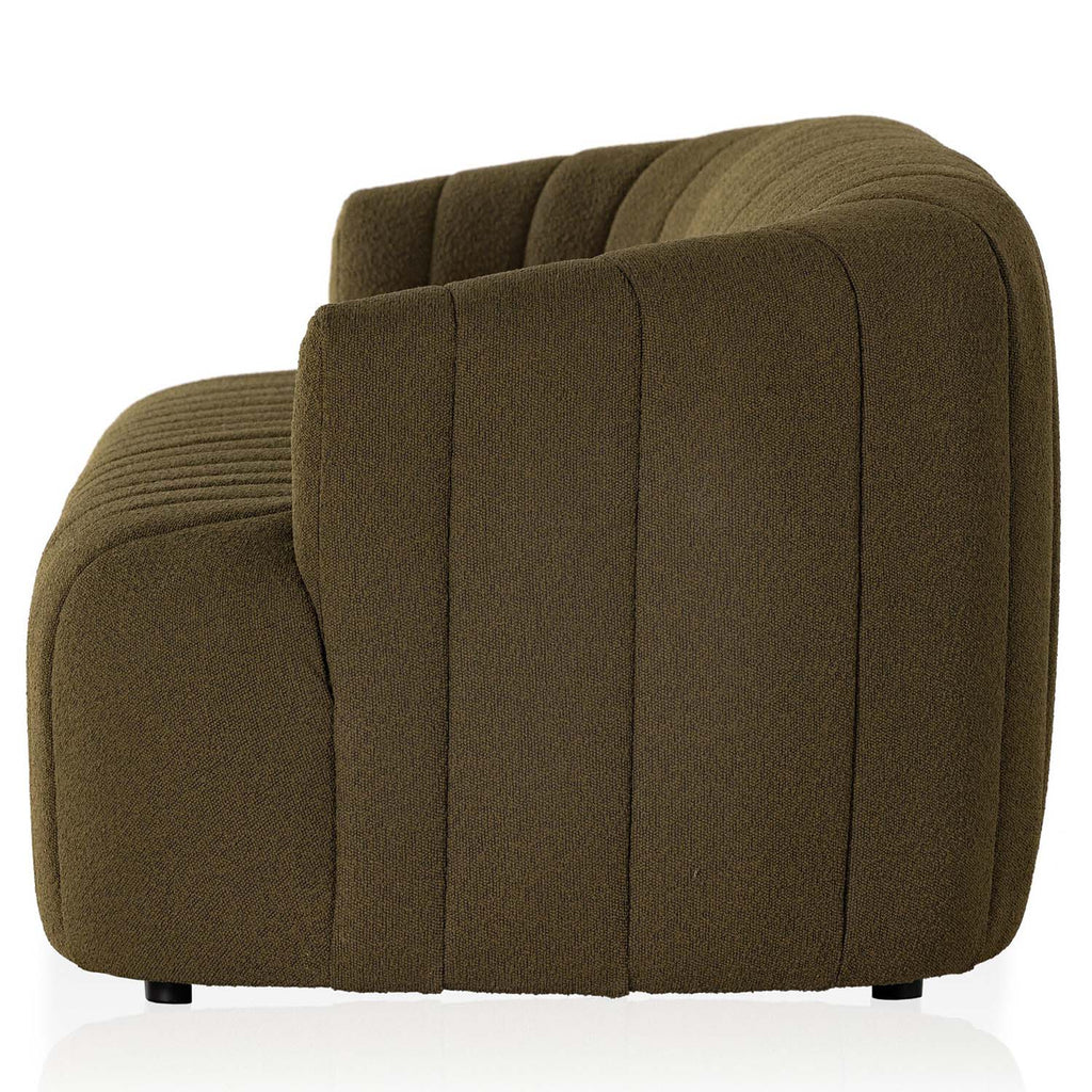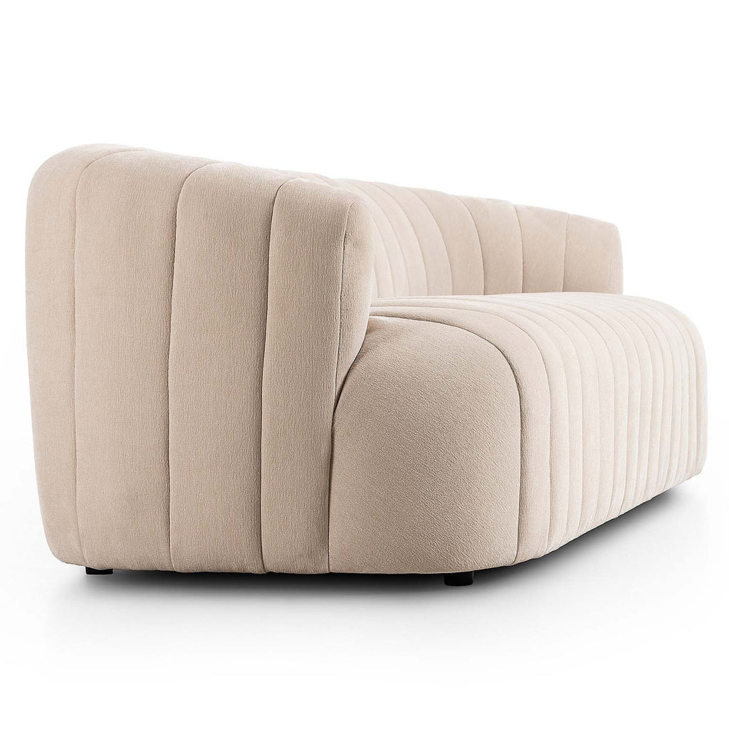 Meet the sofa that offers it all: curves, texture, durability, and sustainability. Detailed with wide, vertical channeling all around. Easy to clean and made from fully recyclable materials, FIQA fabrics are machine-washable, stain-resistant, water-repellent and antimicrobial.