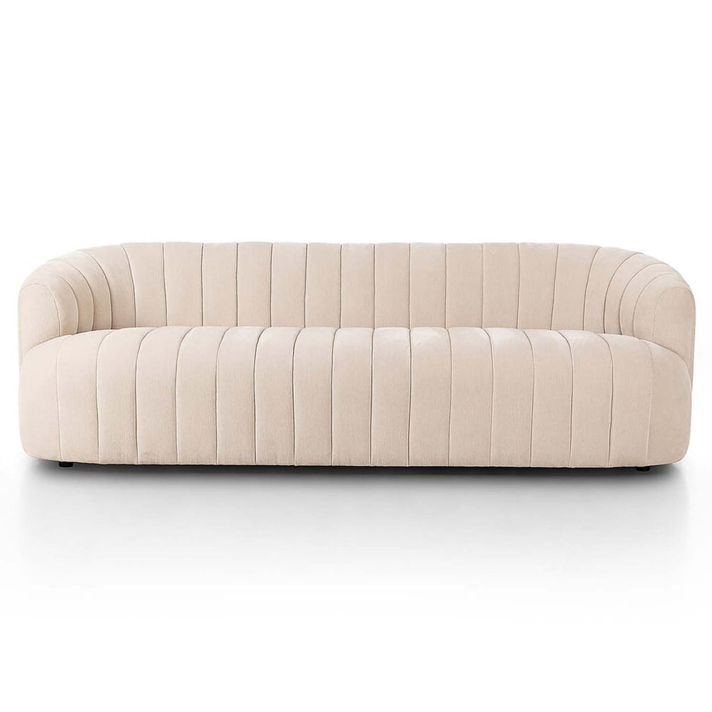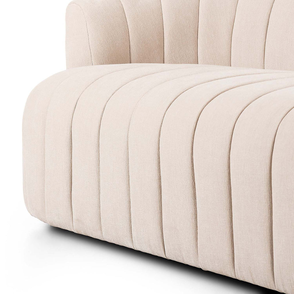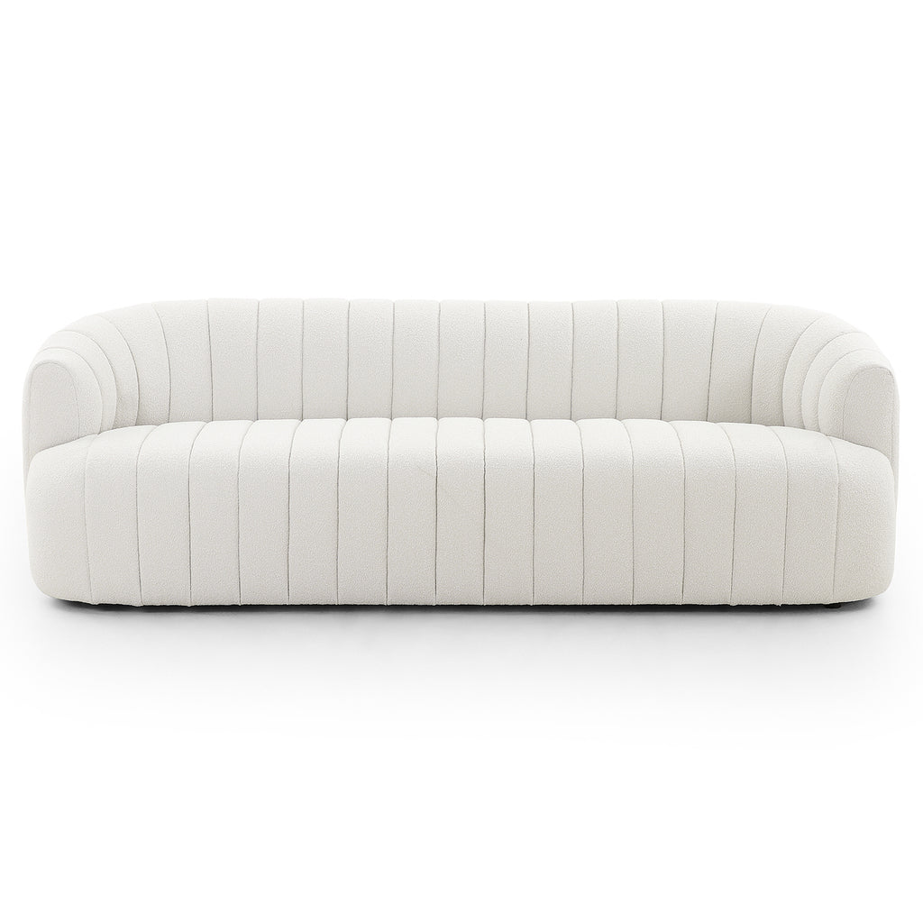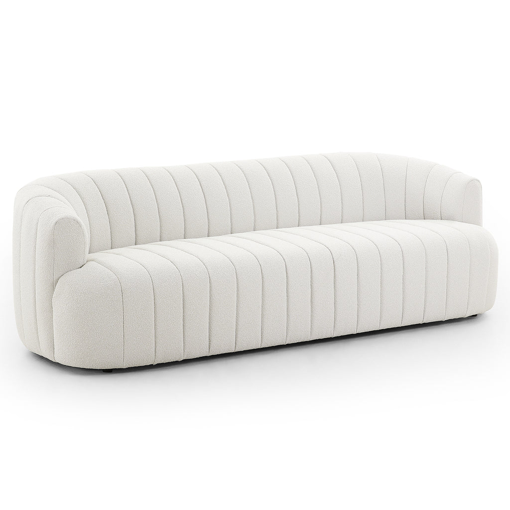 Meet the sofa that offers it all: curves, texture, durability, and sustainability. Detailed with wide, vertical channeling all around. Easy to clean and made from fully recyclable materials, FIQA fabrics are machine-washable, stain-resistant, water-repellent and antimicrobial.
