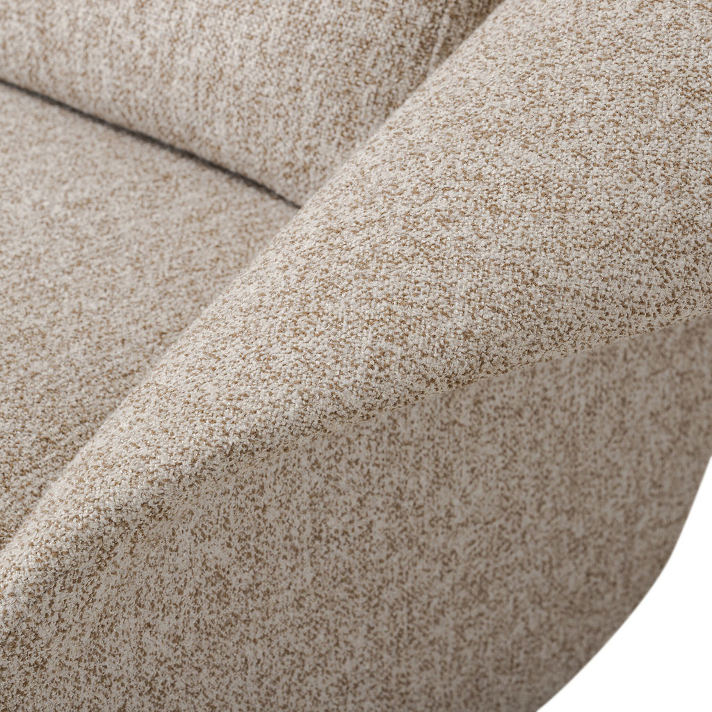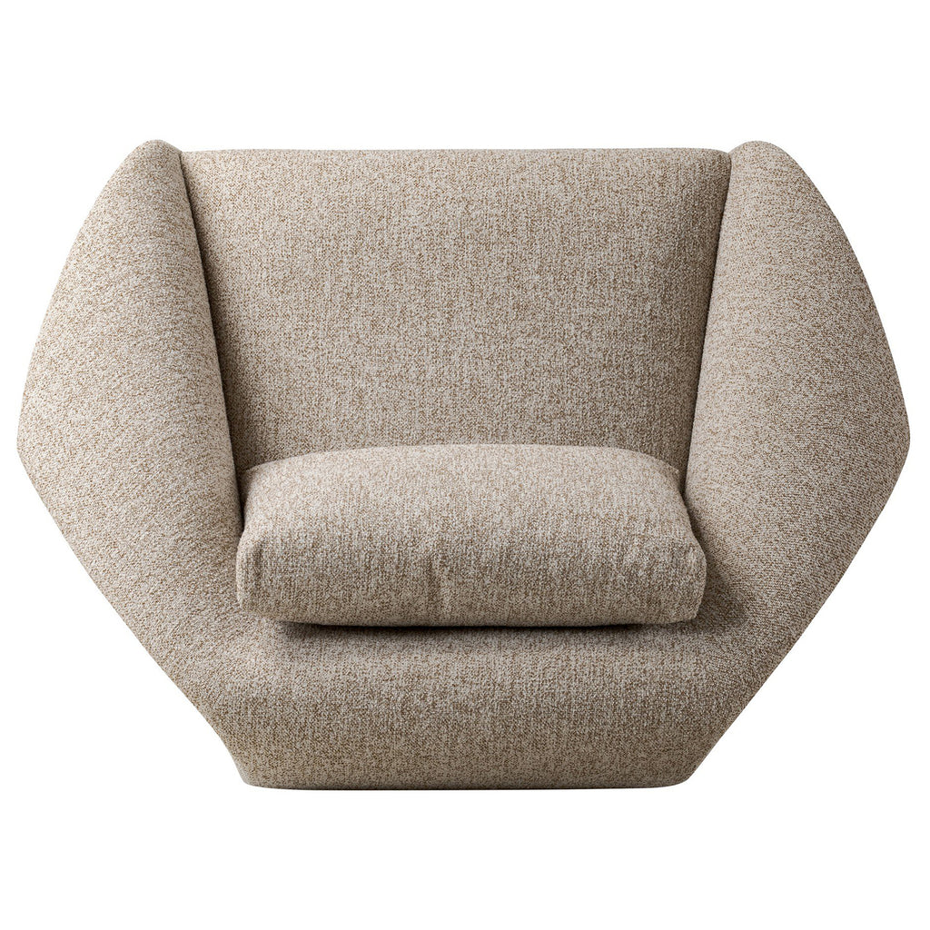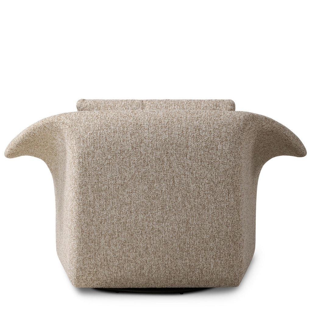 Curved lines and a swivel function make this accent chair equal parts style and substance. Winged arms add sculptural drama, while plush seating and back cushions deliver understated comfort. Upholstered in a slightly heathered fabric with subtle highs and lows throughout.