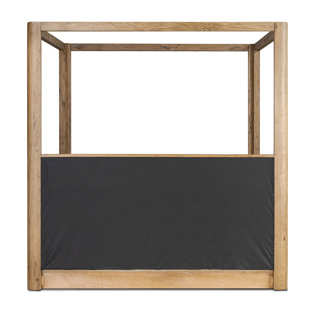 Minimalist and modern, this platform-style canopy bed is framed to a low profile and softened with an upholstered headboard. The character-rich oak's rounded corners and light brown finish add to the bed's fresh appeal.
