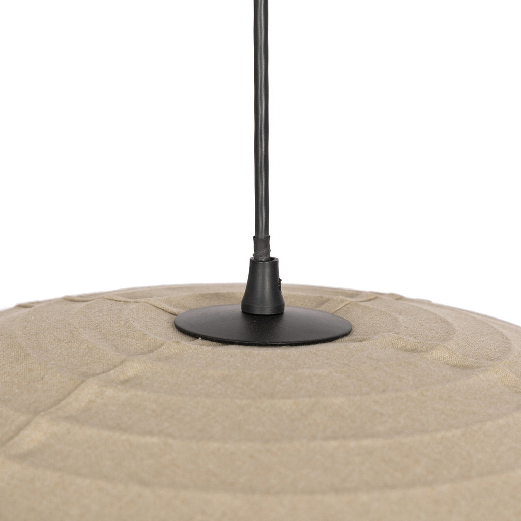 The traditional Japanese lantern, reimagined. Made from light tan flax/linen, this pendant softens spaces with a more diffused, ambient glow. Delicate pleats craft a sense of texture. Free of tension wire, black fabric cording allows for a clean, classic silhouette.