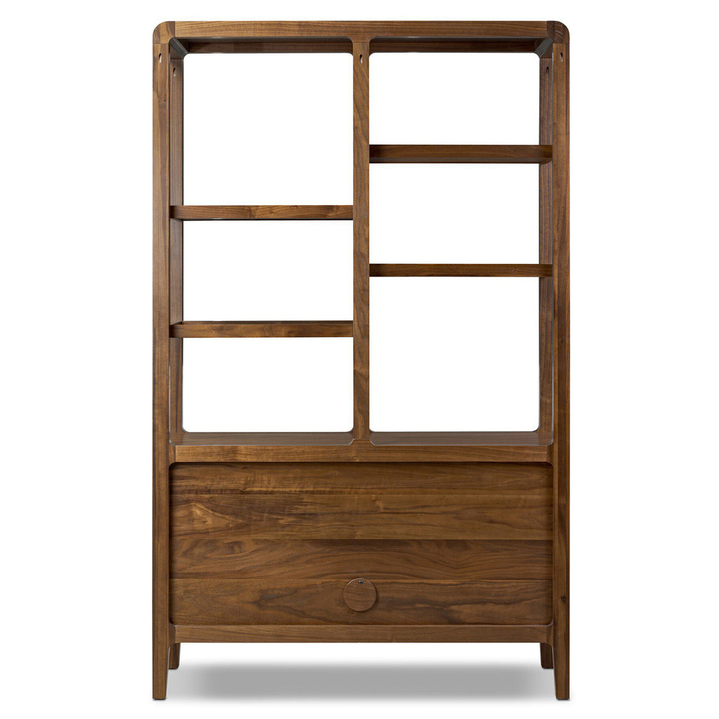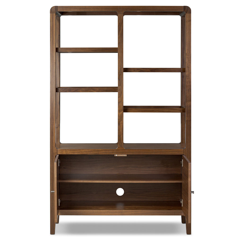 Offset shelves and a mix of open and closed storage give this bookcase its playful edge. Crafted from solid walnut with softened corners and curved legs, this piece is perfect for storing your favorite books, frames and treasures.