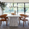 Strike a pose. Well curved and finely sculpted, upholstered seating makes for a unique and shapely addition to the modern dining room.