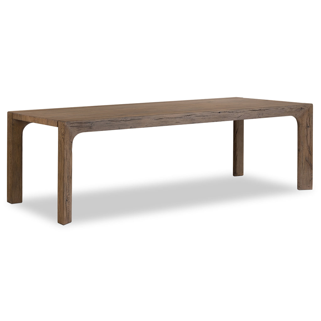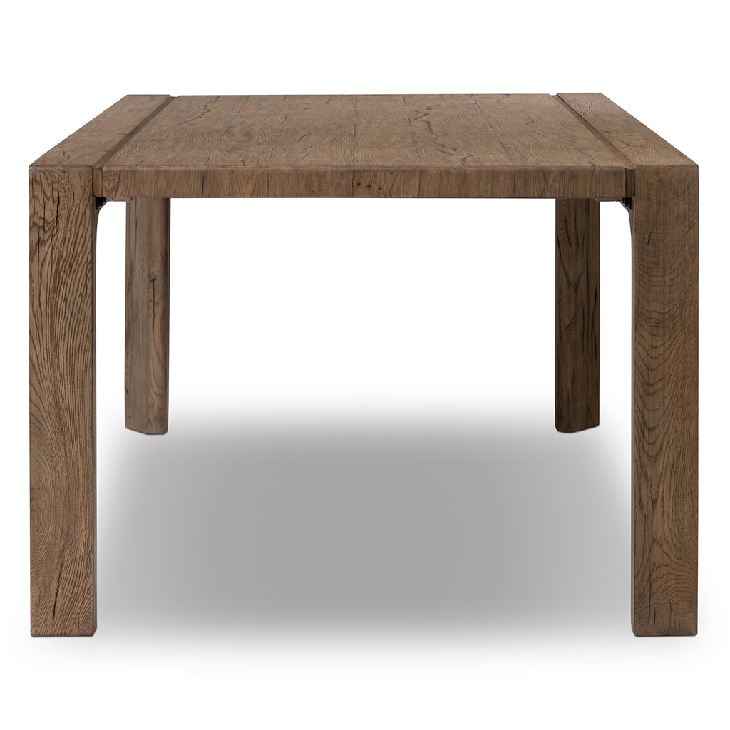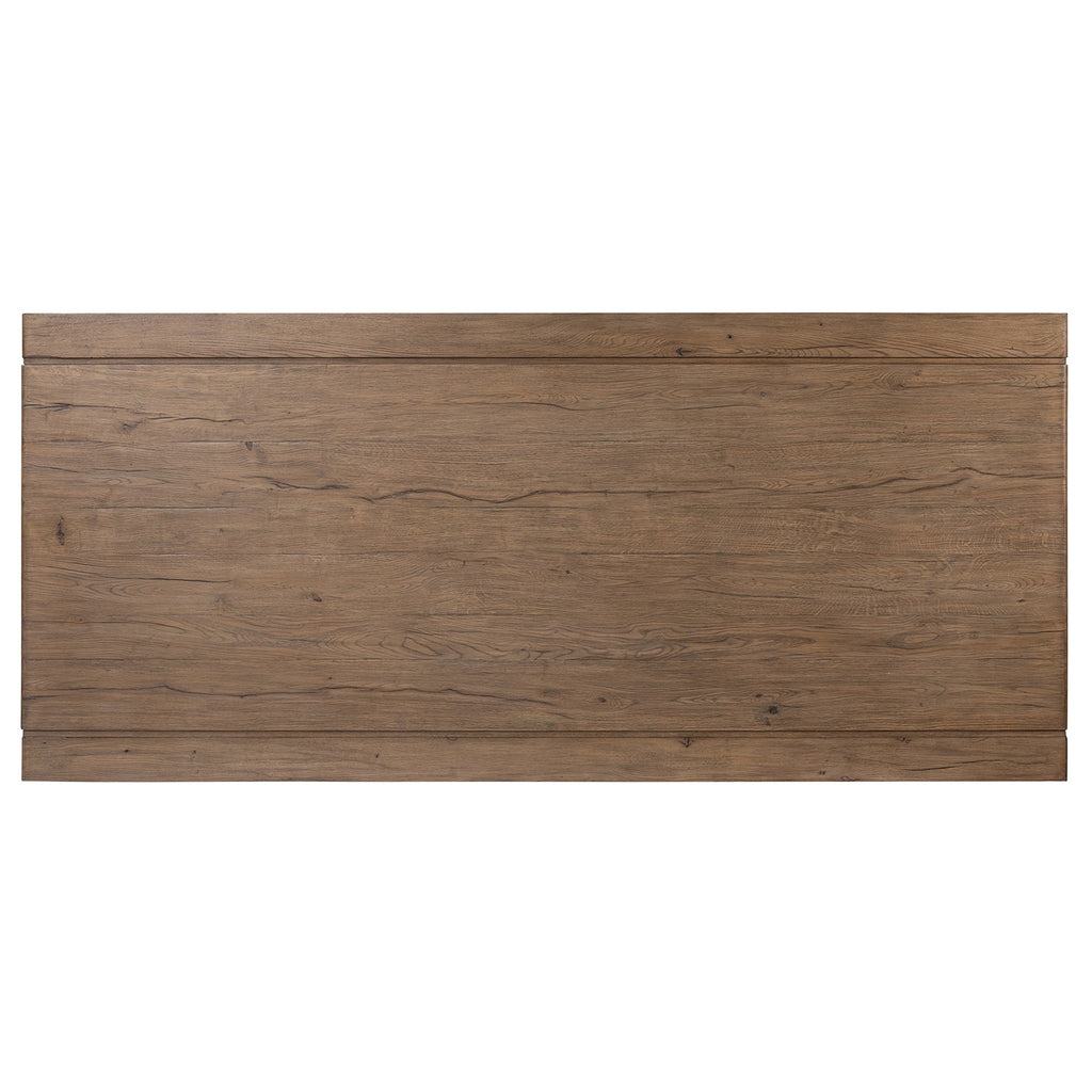 Made from solid reclaimed oak finished in a rustic gray, natural wood grooves plus chamfered leg profiles elevate this plank-style table. Seats up to ten comfortably. Designed in partnership with longtime Four Hands collaborator Thomas Bina and Brazilian designer Ronald Sasson.