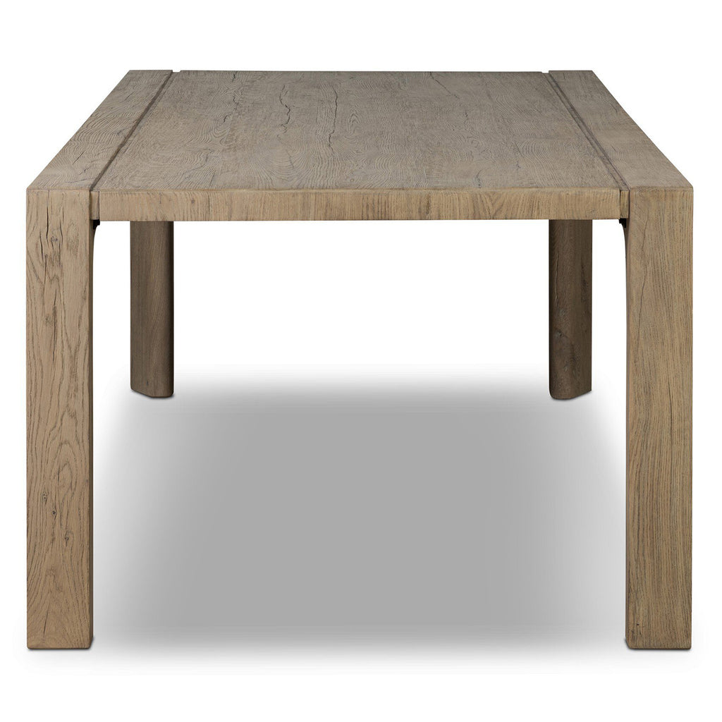 Made from solid reclaimed oak finished in a rustic gray, natural wood grooves plus chamfered leg profiles elevate this plank-style table. Seats up to ten comfortably. Designed in partnership with longtime Four Hands collaborator Thomas Bina and Brazilian designer Ronald Sasson.